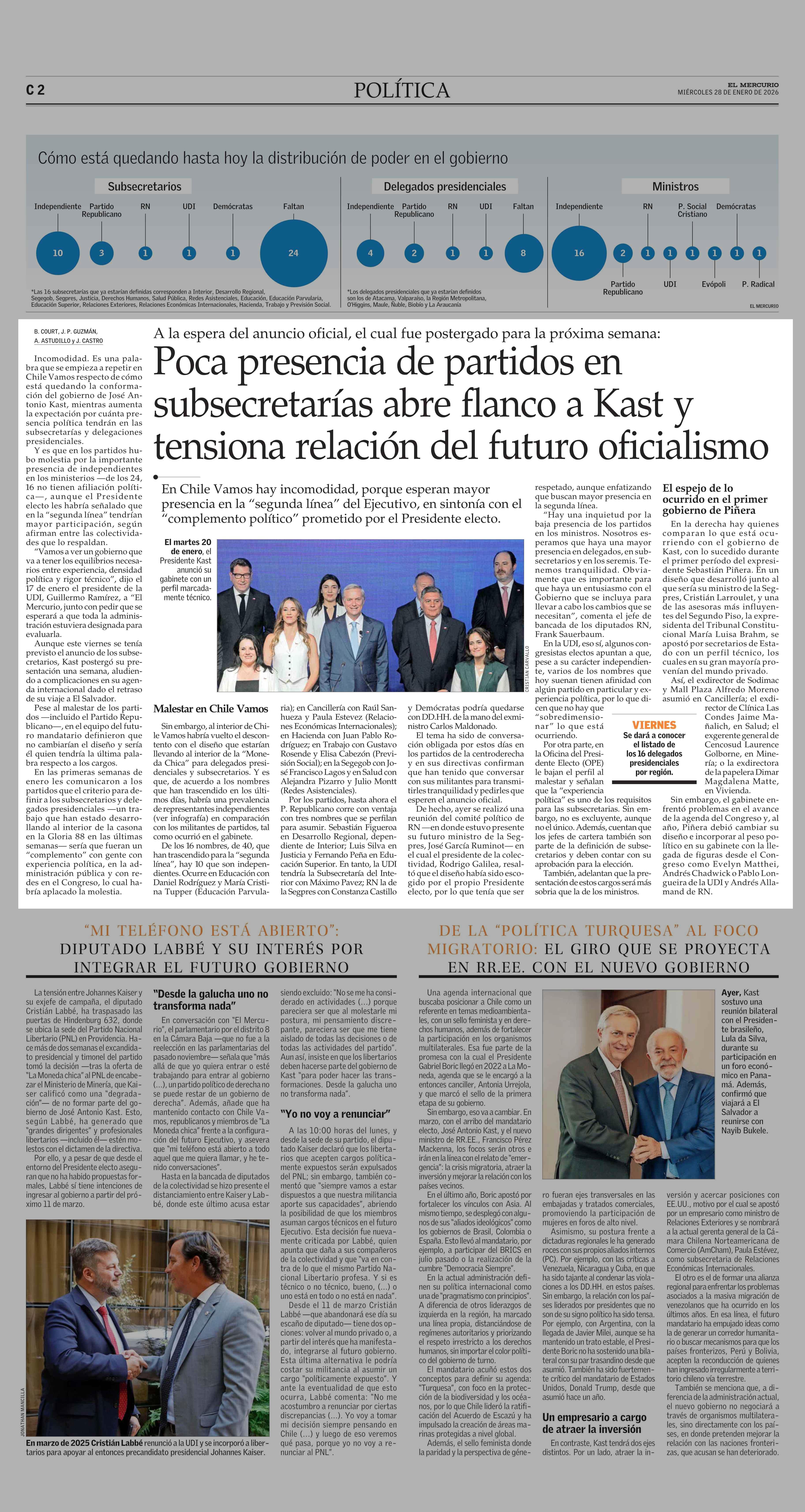 Título: Poca presencia de partidos en subsecretarías abre flanco a Kast y tensiona relación del futuro oficialismo