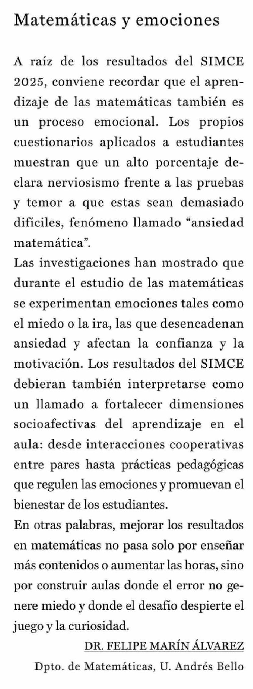 Cartas: Matemáticas y emociones 10-03-2026 La Prensa de Curicó |