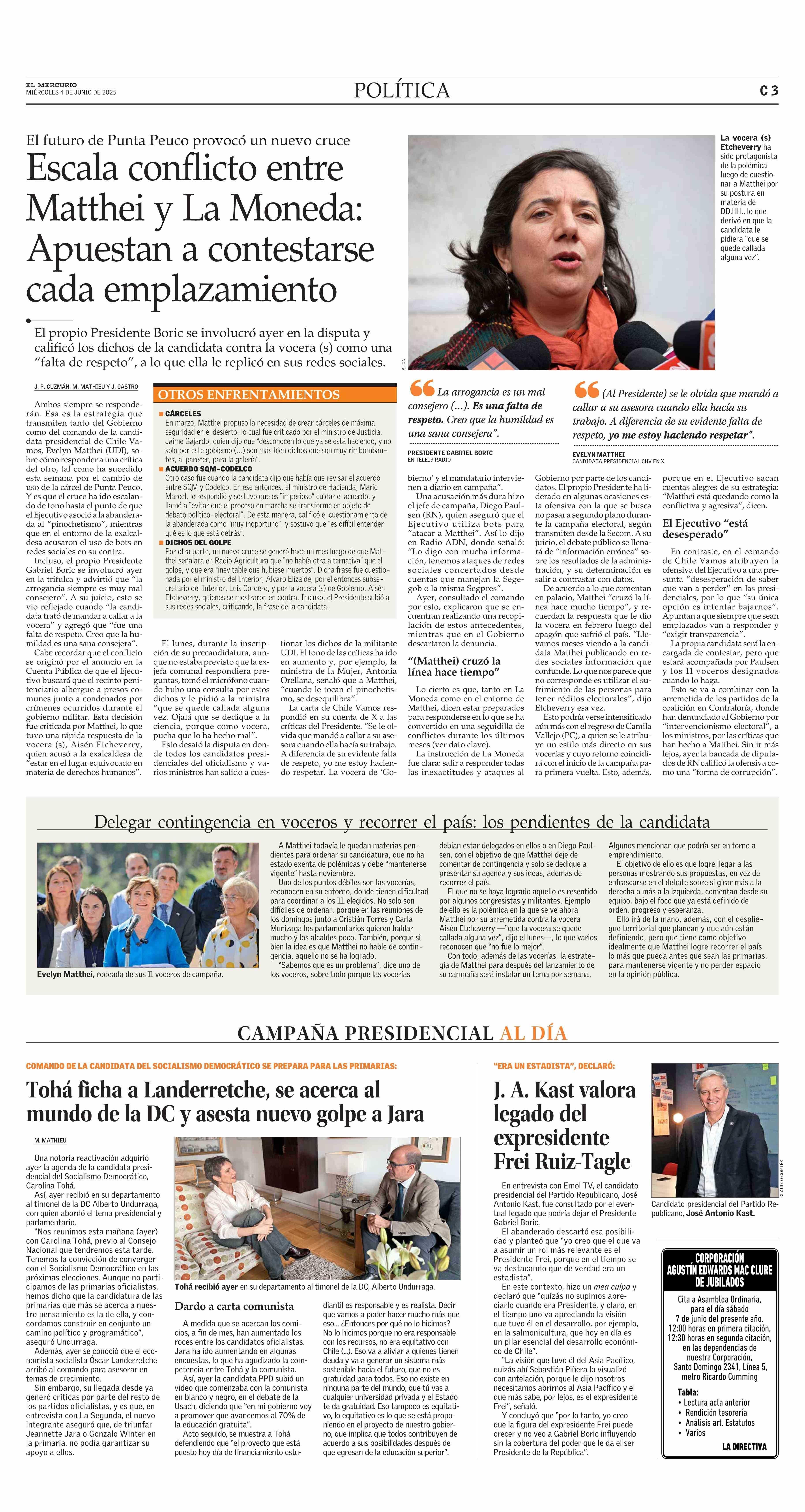 Tohá ficha a Landerretche, se acerca al mundo de la DC y asesta nuevo golpe a Jara 04-06-2025 El Mercurio |