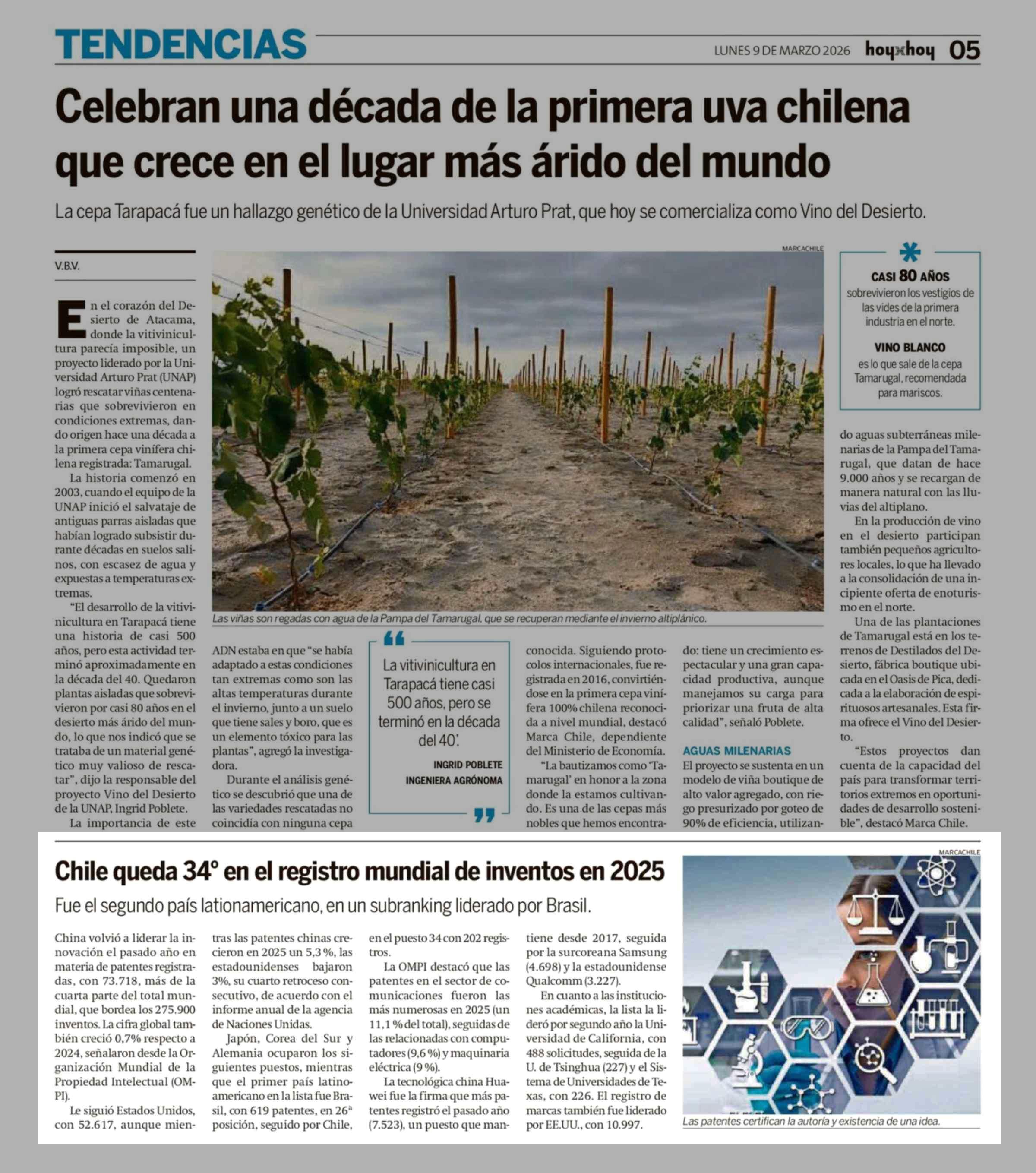 Chile queda 34° en el registro mundial de inventos en 2025 09-03-2026 Hoy x Hoy |