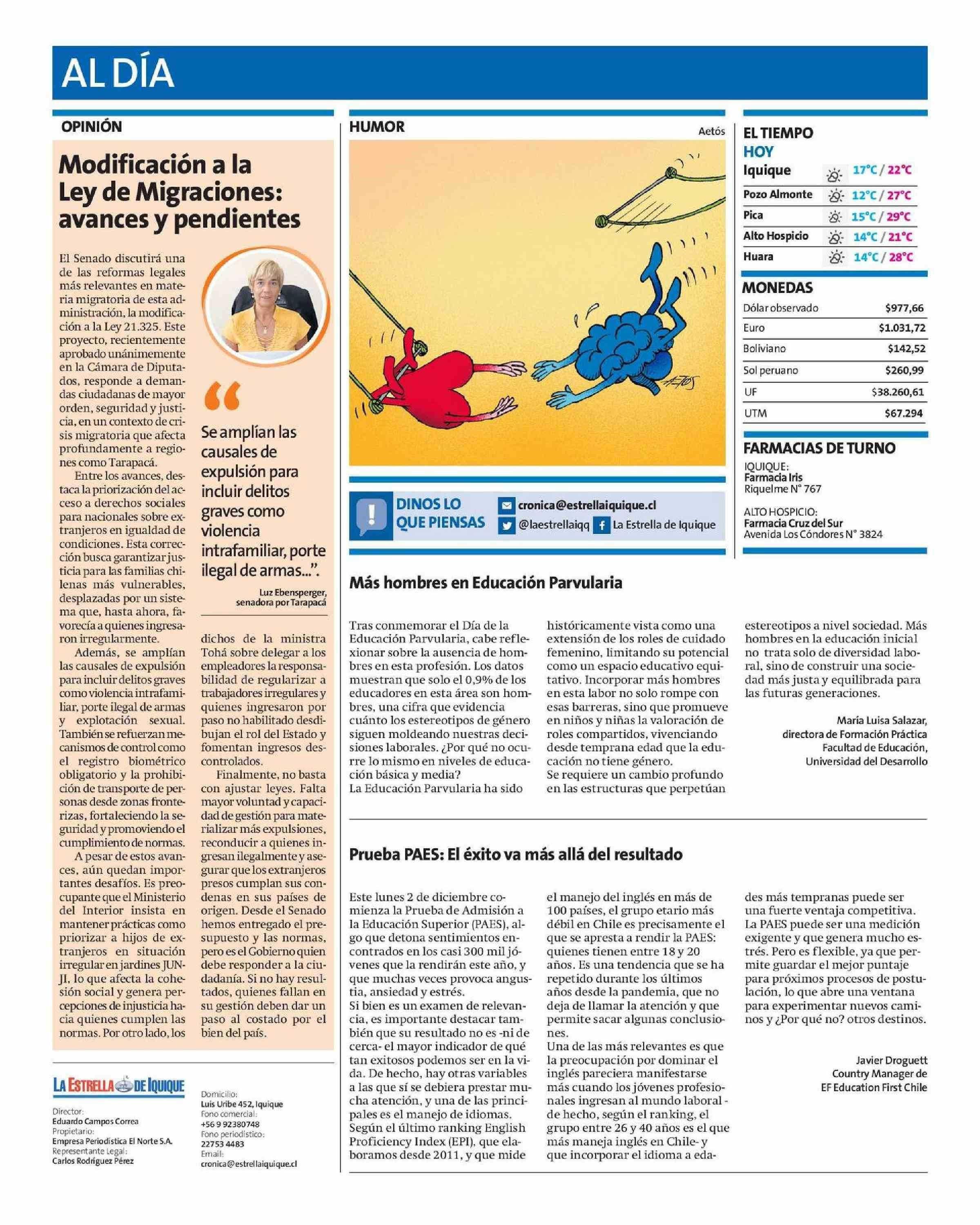 Modificación a la Ley de Migraciones: avances y pendientes 01-12-2024 La Estrella de Iquique |