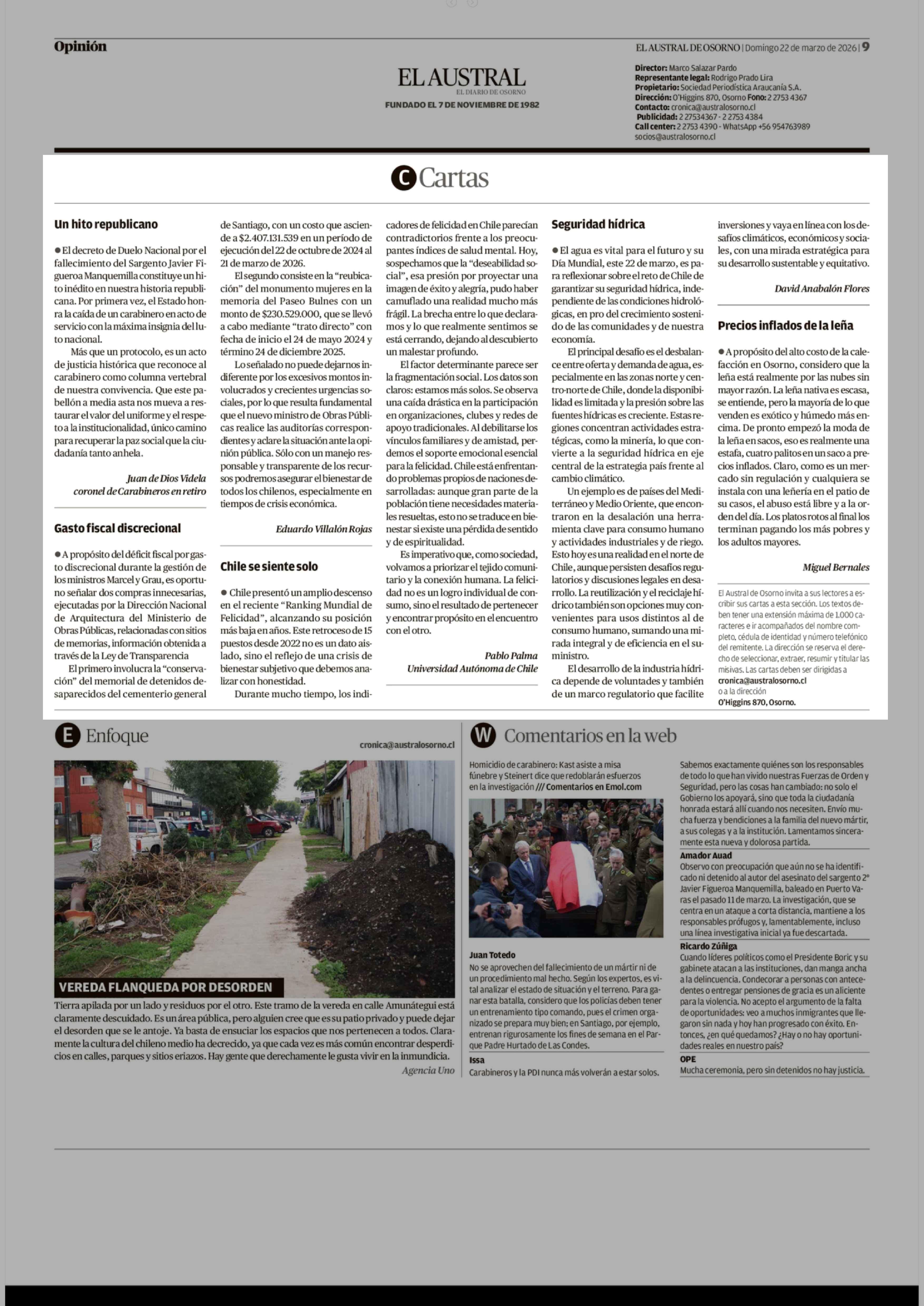 Fuente: El Austral de Osorno (El Austral de Osorno) Página(s): 9