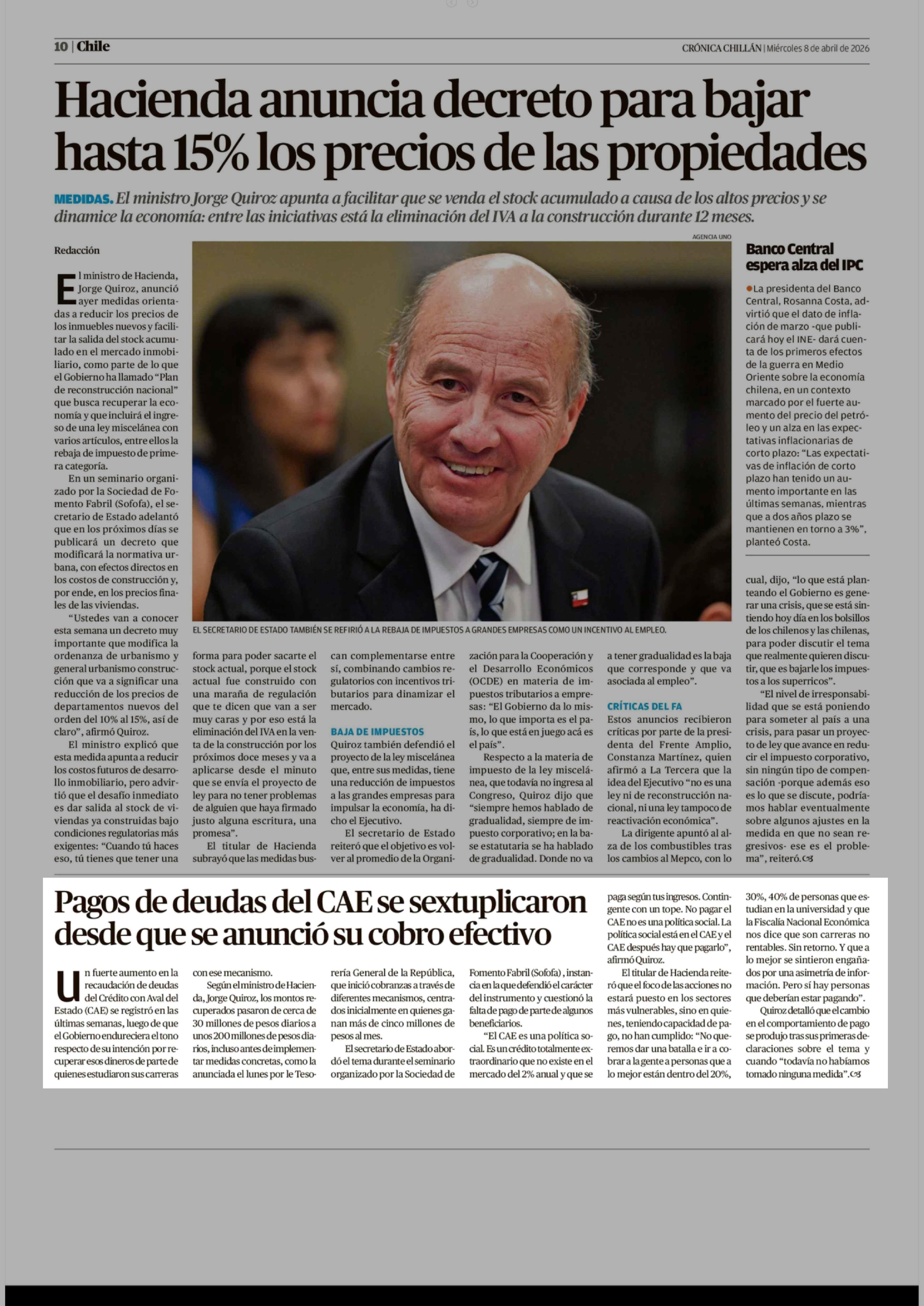 Pagos de deudas del CAE se sextuplicaron desde que se anunció su cobro efectivo 08-04-2026 Crónica de Chillán |