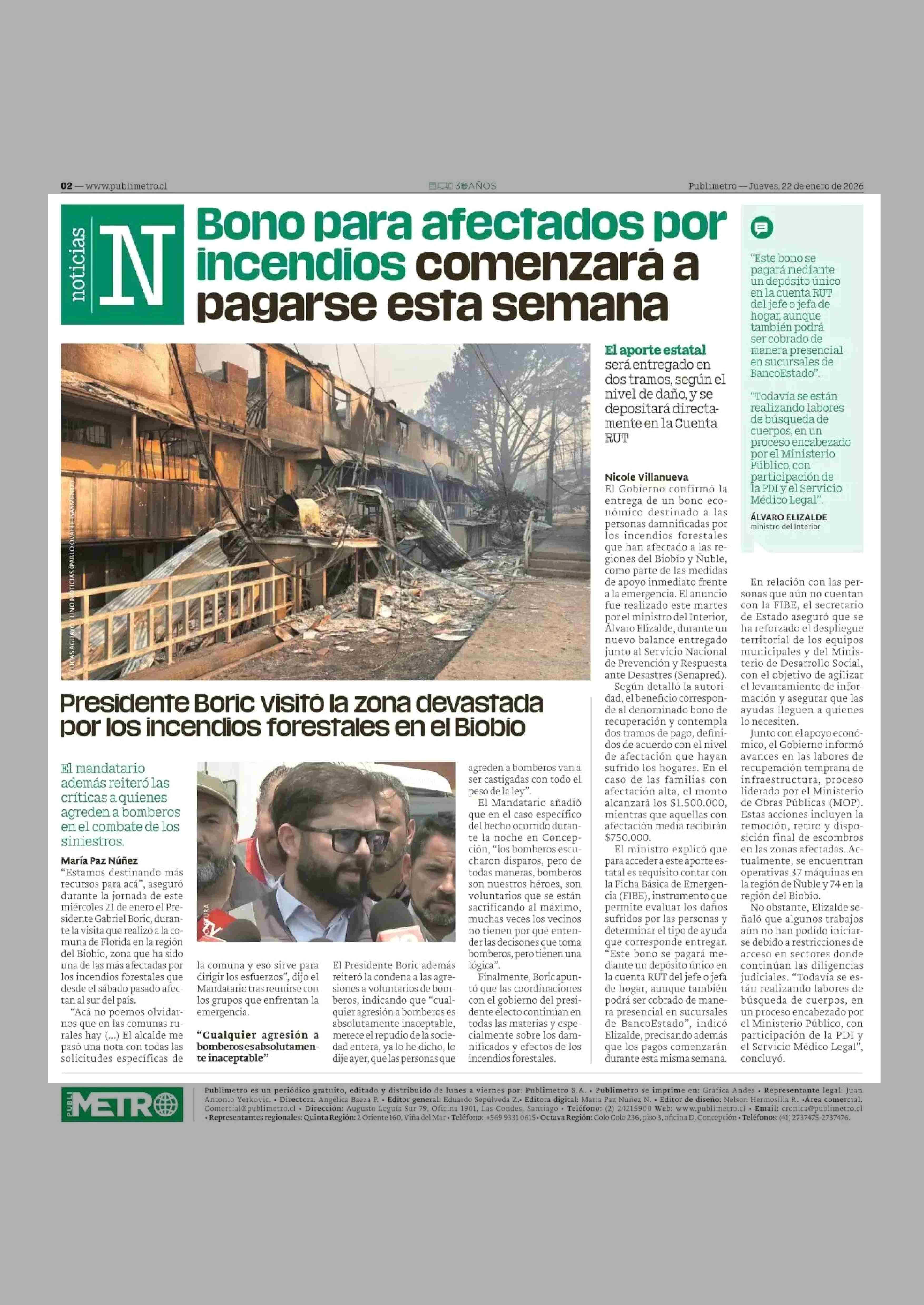 Bono para afectados por incendios comenzara a N pagarse esta semana 22-01-2026 Publimetro |