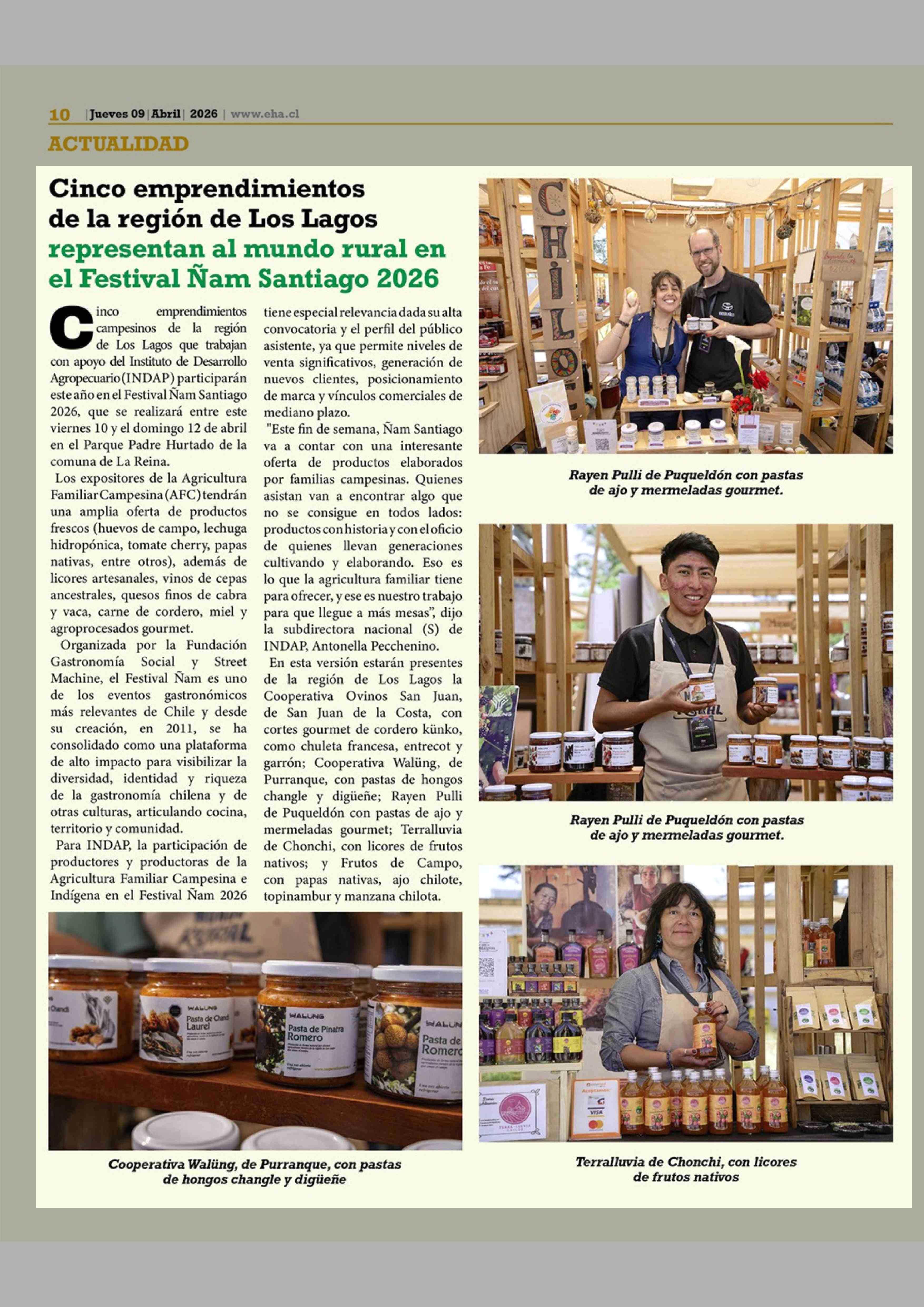 | Título: | Cinco emprendimientos de la región de Los Lagos representan al mundo rural en el Festival Ñam Santiago 2026 |