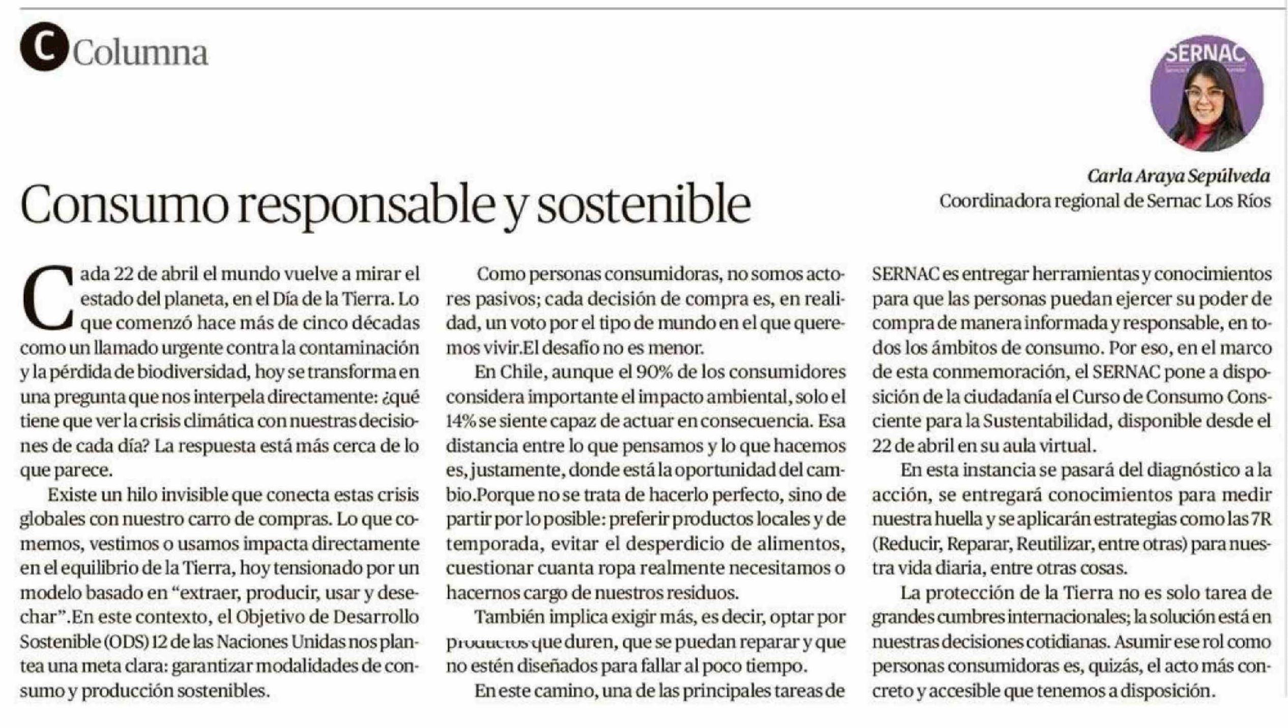 Título: COLUMNAS DE OPINIÓN: Consumo responsable y sostenible
