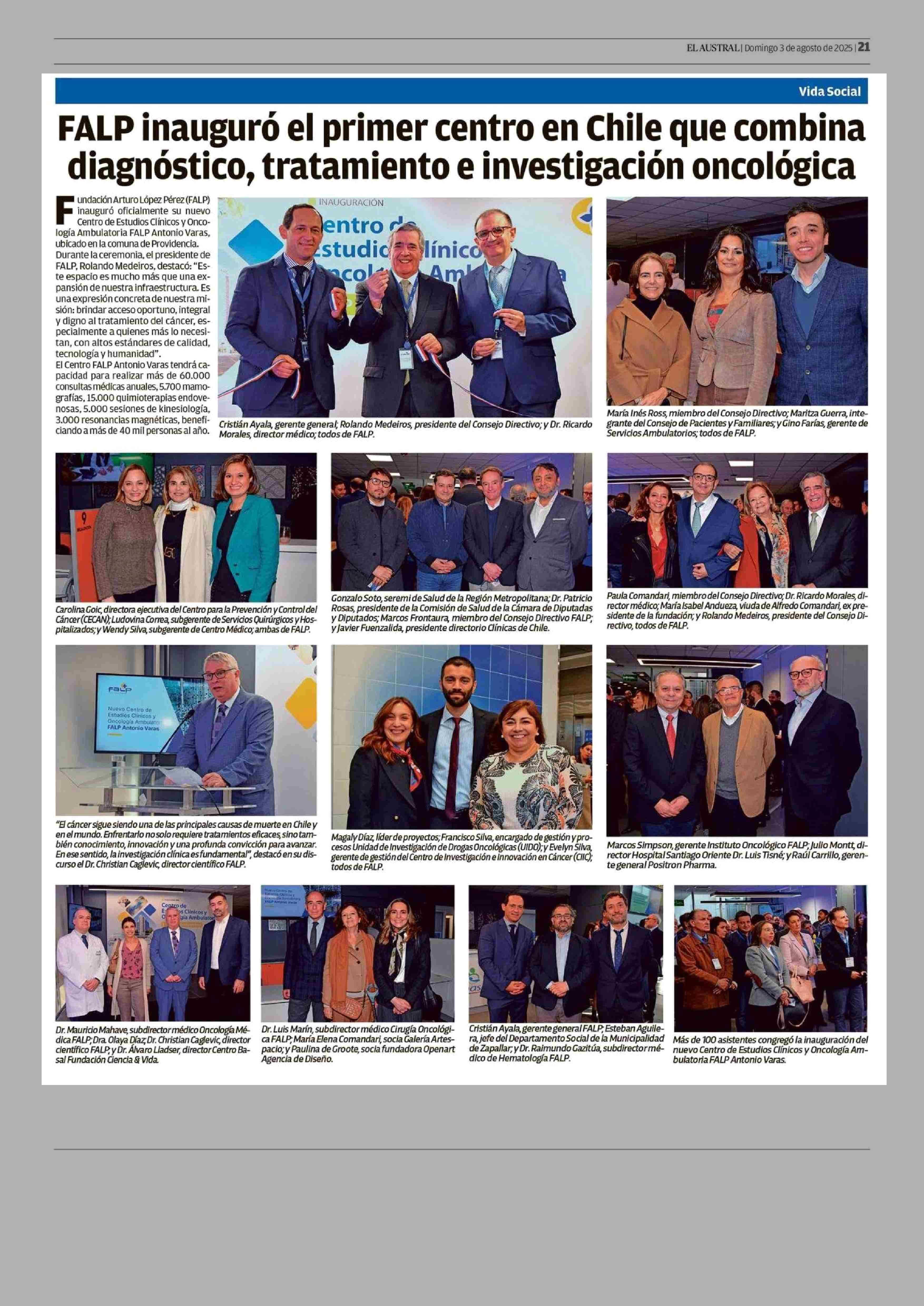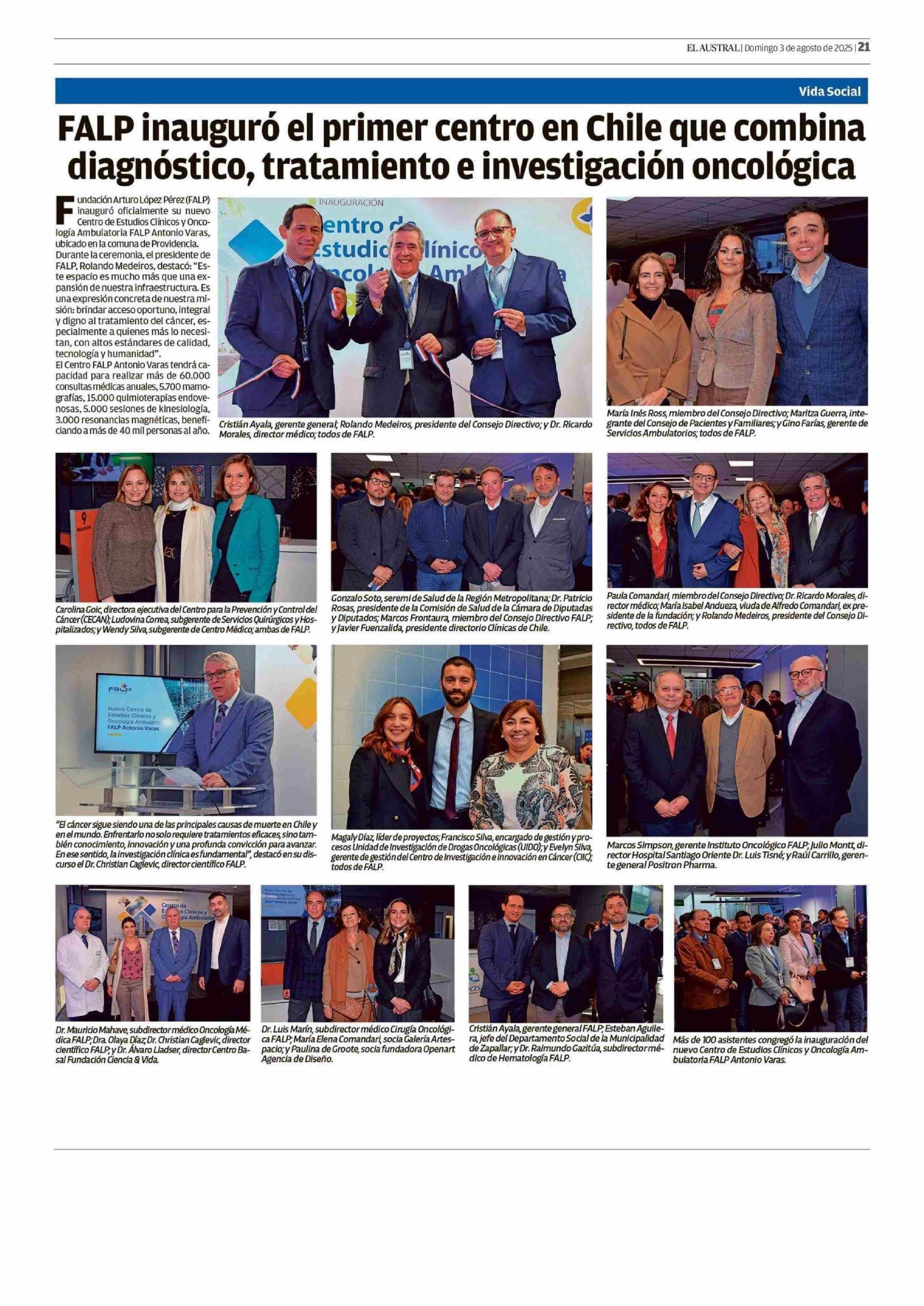 FALP inauguró el primer centro en Chile que combina diagnóstico, tratamiento e investigación oncológica 03-08-2025 El Austral de la Araucanía |