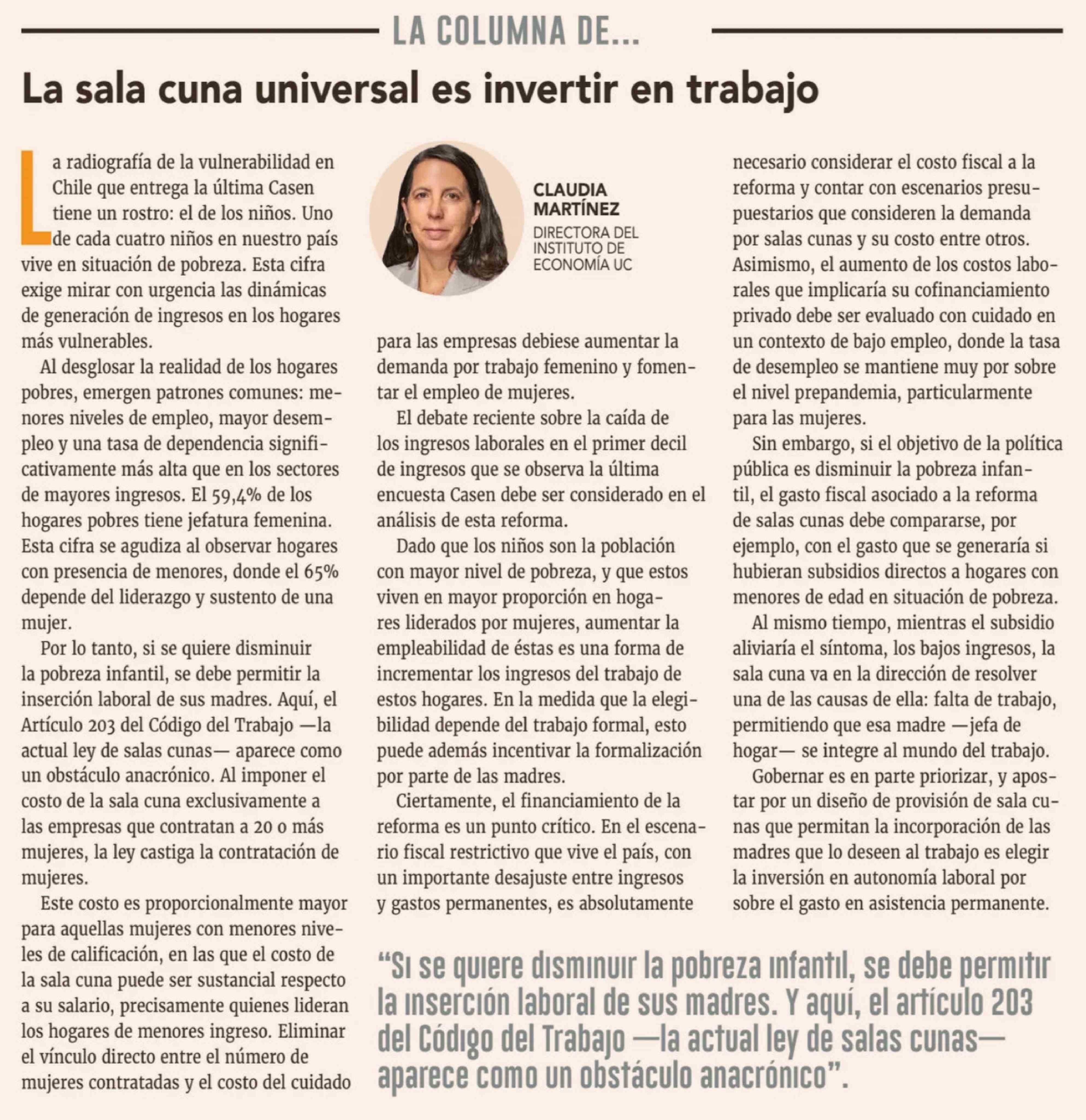 Título: Columnas de Opinión: La sala cuna universal es invertir en trabajo