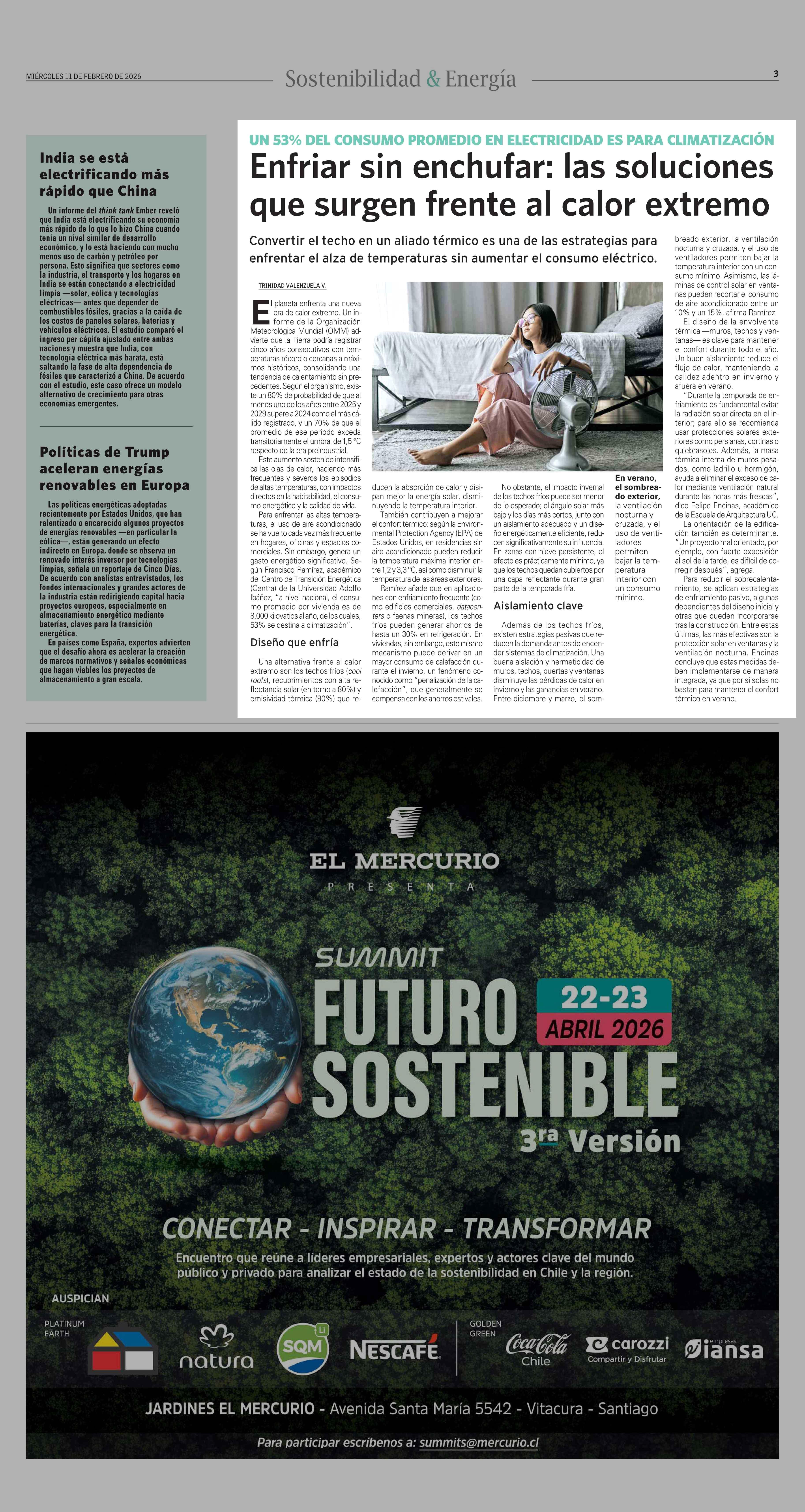 Enfriar sin enchufar: las soluciones que surgen frente al calor extremo 11-02-2026 El Mercurio |
