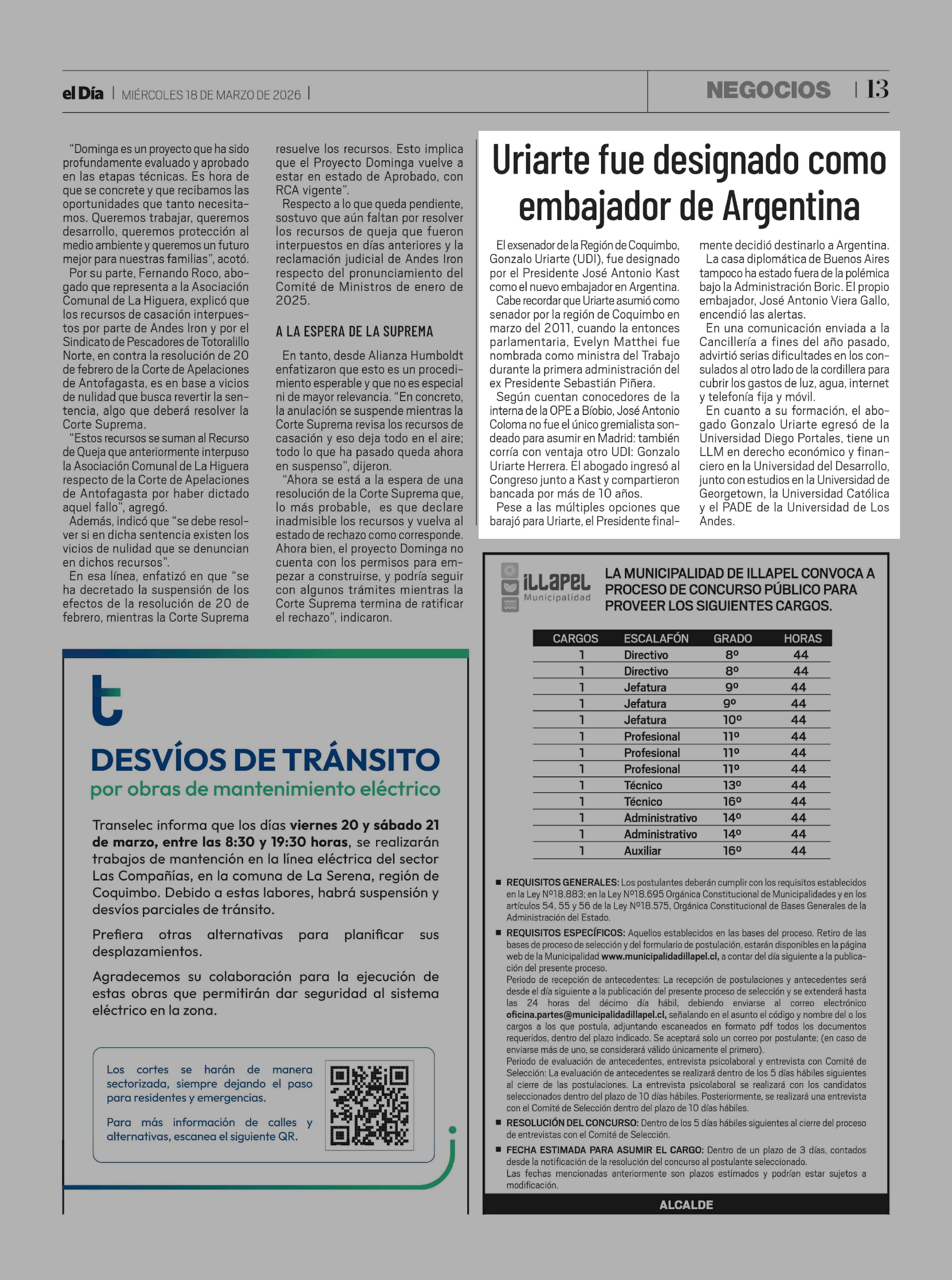 Uriarte fue designado como embajador de Argentina 18-03-2026 El Día |