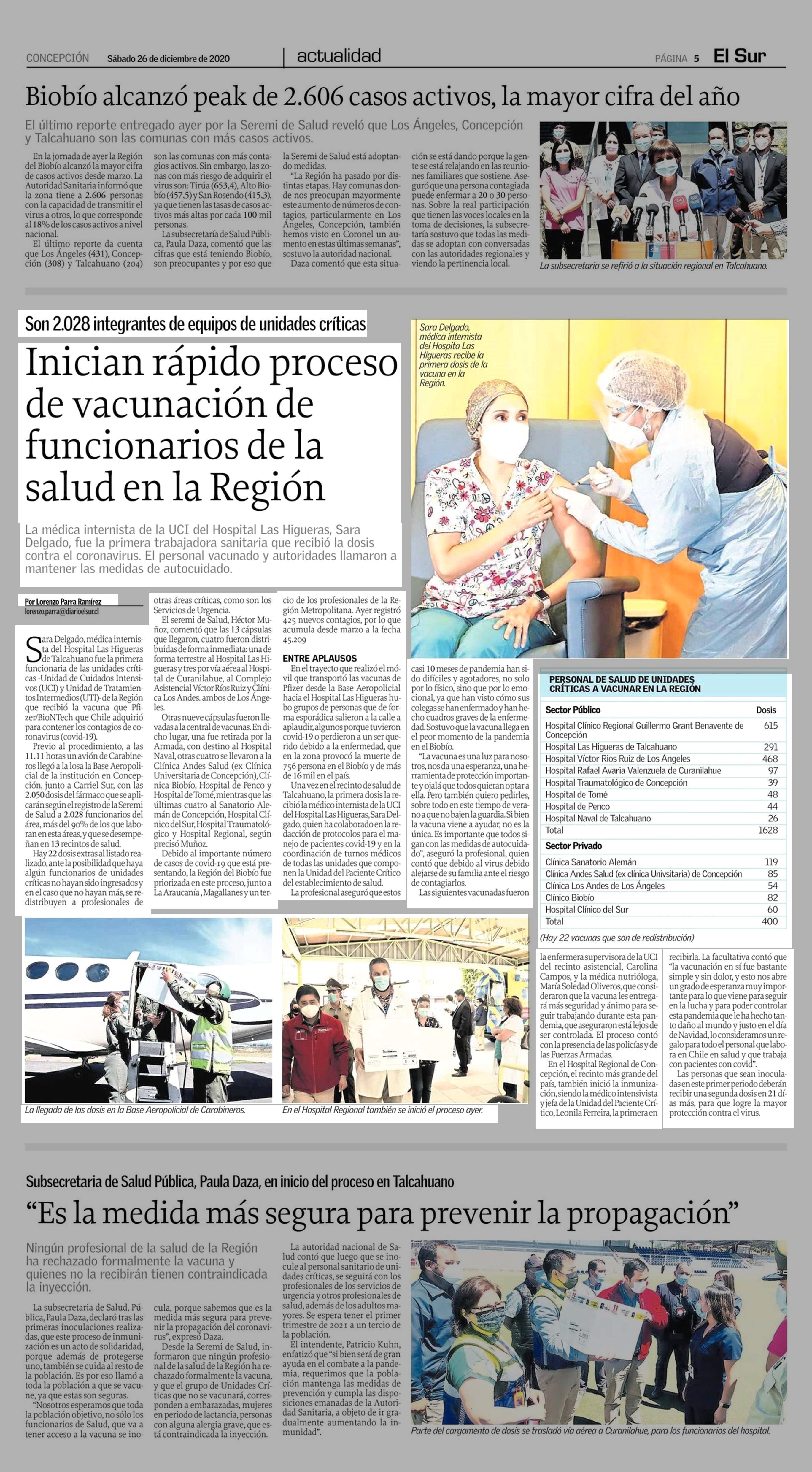 Inician rápido proceso de vacunación de funcionarios de la salud en la Región 26-12-2020 El Sur |