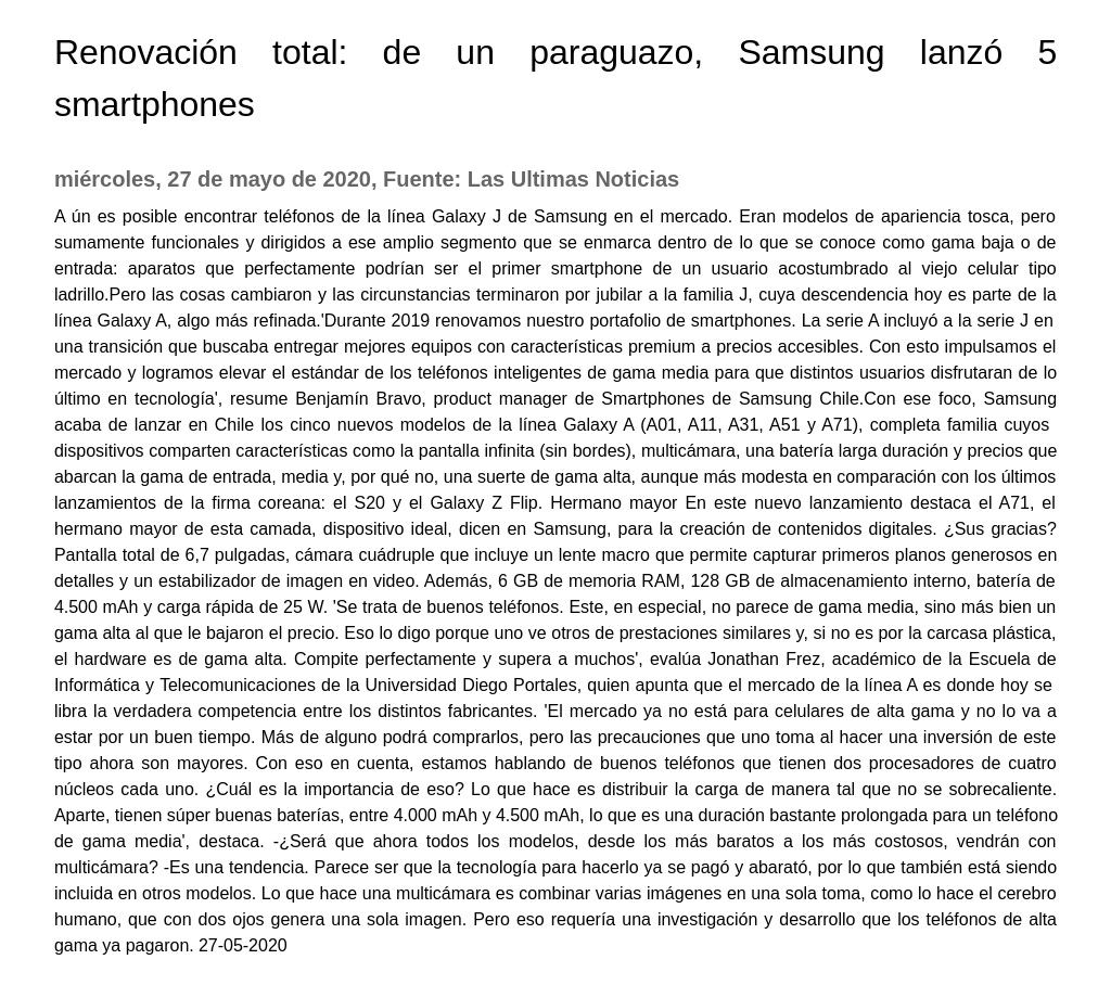 Con ese foco, Samsung acaba de lanzar en Chile los cinco nuevos modelos de la línea Galaxy A (A01, A11, A31, A51 y A71), completa familia cuyos dispositivos comparten características como la pantalla infinita (sin bordes), multicámara, una batería larga duración y precios que abarcan la gama de entrada, media y, por qué no, una suerte de gama alta, aunque más modesta en comparación con los últimos lanzamientos de la firma coreana: el S20 y el Galaxy Z Flip.