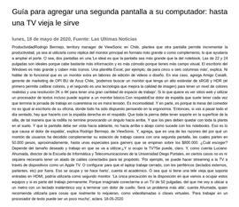 Y, agrega, que es una de las razones del por qué un montón de usuarios ha decidido complementar su estación de trabajo casera con una segunda pantalla, las cuales parten en 50.000 pesos, aproximadamente, hasta unas especiales para gamers que se empinan sobre los $800.000. ¿Cuál escoger? Depende del tamaño deseado y trabajo en que se va a utilizar. ¿Y si ocupo la TV?Se puede, claro.