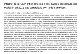 La autora del estudio, Carolina Velasco, indican que el proyecto de Santelices era más completo debido a que “estaba mucho mejor desarrollado el Plan de Salud Universal”. Informe de la CEP critica reforma a las isapres presentada por Mañalich en 2011 tras compararla con la de Santelices por El Mostrador 17 julio, 2019 Crédito: Agencia Uno En medio del actual debate por la reforma a las isapres, el Centro de Estudios Públicos (CEP) realizó un informe en el que analizó las propuestas presentadas por Jaime Mañalich en 2011 durante el primer gobierno de Sebastián Piñera y la ingresada por el exministro Emilio Santelices en abril de este año. Los resultados, según la autora del estudio, Carolina Velasco, indican que el proyecto de Santelices era más completo debido a que “estaba mucho mejor desarrollado el Plan de Salud Universal”, ya que “el mecanismo, la forma de fijar los precios y su contenido eran más claros”. Artículos Relacionados 3 julio, 2019 Que no quede huella: Mañalich retira proyecto de Santelices y repondrá reforma a las isapres de Piñera I por El Mostrador En cambio, en el proyecto presentado inicialmente por Mañalich el 2011, el total del precio del Plan Garantizado de Salud es fijo e igual para todos los afiliados a una isapre, lo cual “desincentiva el ingreso de personas de menor riesgo, fomentando la preferencia de los menos riesgosos por parte de las aseguradoras”. Según el diario La Tercera , uno de los puntos indicados en el documento y que inclina la balanza a favor de Santelices es que la reforma presentada en abril pasado “permitía la afiliación de los usuarios de Fonasa al nuevo esquema, sin declaración de salud ni posibilidad de rechazo por parte de las isapres, aunque bajo condiciones poco atractivas”. Otras críticas que hace el documento de la CEP a la propuesta de Mañalich es que Fonasa no ofrece un Plan Garantizado de Salud (PGS), por lo que solo se puede adquirir éste en isapres; que el precio del PGS es igual para todos en cada isapre, lo que limita el ingreso de personas de menos recursos y que el plan ofrecido es acotado en cuanto a los beneficios cubiertos, potenciando de esta manera el uso de los beneficios y seguros complementarios. En la actualidad, el ministro Mañalich retiró, tras un acuerdo con los senadores, la discusión del proyecto de Santelices y en cambio continuar con la discusión usando la reforma que el mismo Mañalich presentó durante su primer período como ministro de Piñera.