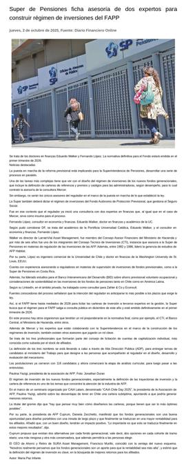 Super de Pensiones ficha asesoría de dos expertos para construir régimen de inversiones del FAPP
