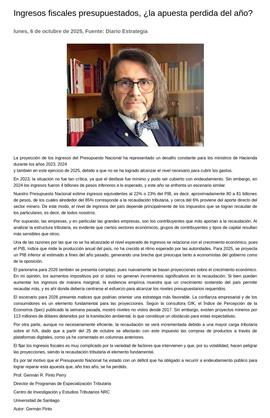 El panorama para 2026 también se presenta complejo, pues nuevamente se basan proyecciones sobre el crecimiento económico. En mi opinión, los aumentos impositivos por sí solos no generan incrementos significativos en la recaudación. Si bien pueden aumentar los ingresos de manera marginal, la evidencia empírica muestra que un crecimiento sostenido del país permite recaudar más, y es ahí donde debería centrarse el esfuerzo para alcanzar los niveles presupuestarios requeridos.