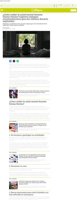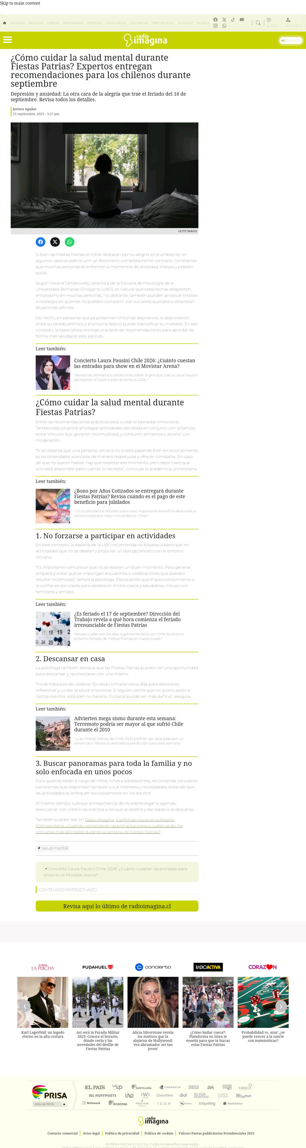 ¿Cómo cuidar la salud mental durante Fiestas Patrias? Expertos entregan recomendaciones para los chilenos durante septiembre 15-09-2025 Radioimagina Depresión y ansiedad: La otra cara de la alegría que trae el feriado del 18 de septiembre. Revisa todos los detalles. Si bien las Fiestas Patrias en Chile destacan por su alegría en el ambient... |