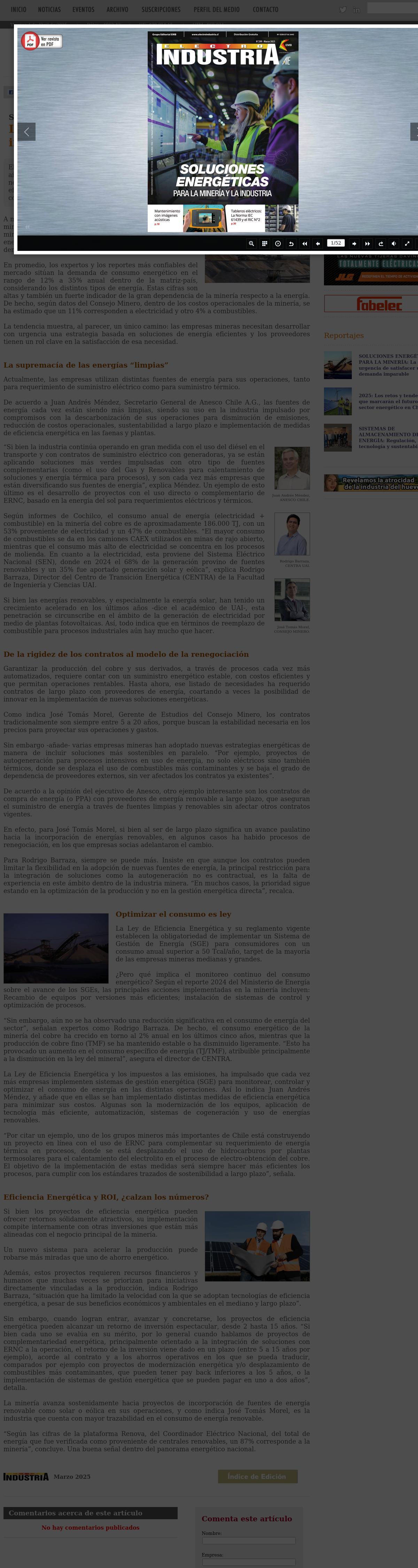 La urgencia de satisfacer una demanda imparable 04-04-2025 Emb A medida que el tiempo avanza, el consumo de energía de la minería aumenta, especialmente en el segmento de la gran minería del cobre. Como contrapartida, la producción de energía se desarroll... |