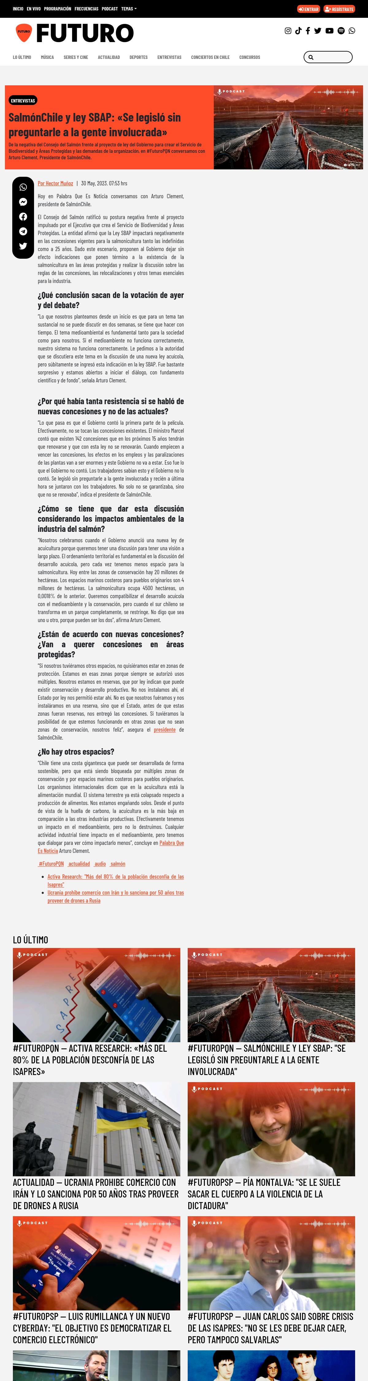 Consejo del Salmón frente al proyecto de ley del Gobierno para crear el Servicio de Biodiversidad y Áreas Protegidas y las demandas de la organización, en #FuturoPQN conversamos con Arturo Clement, Presidente de SalmónChile.