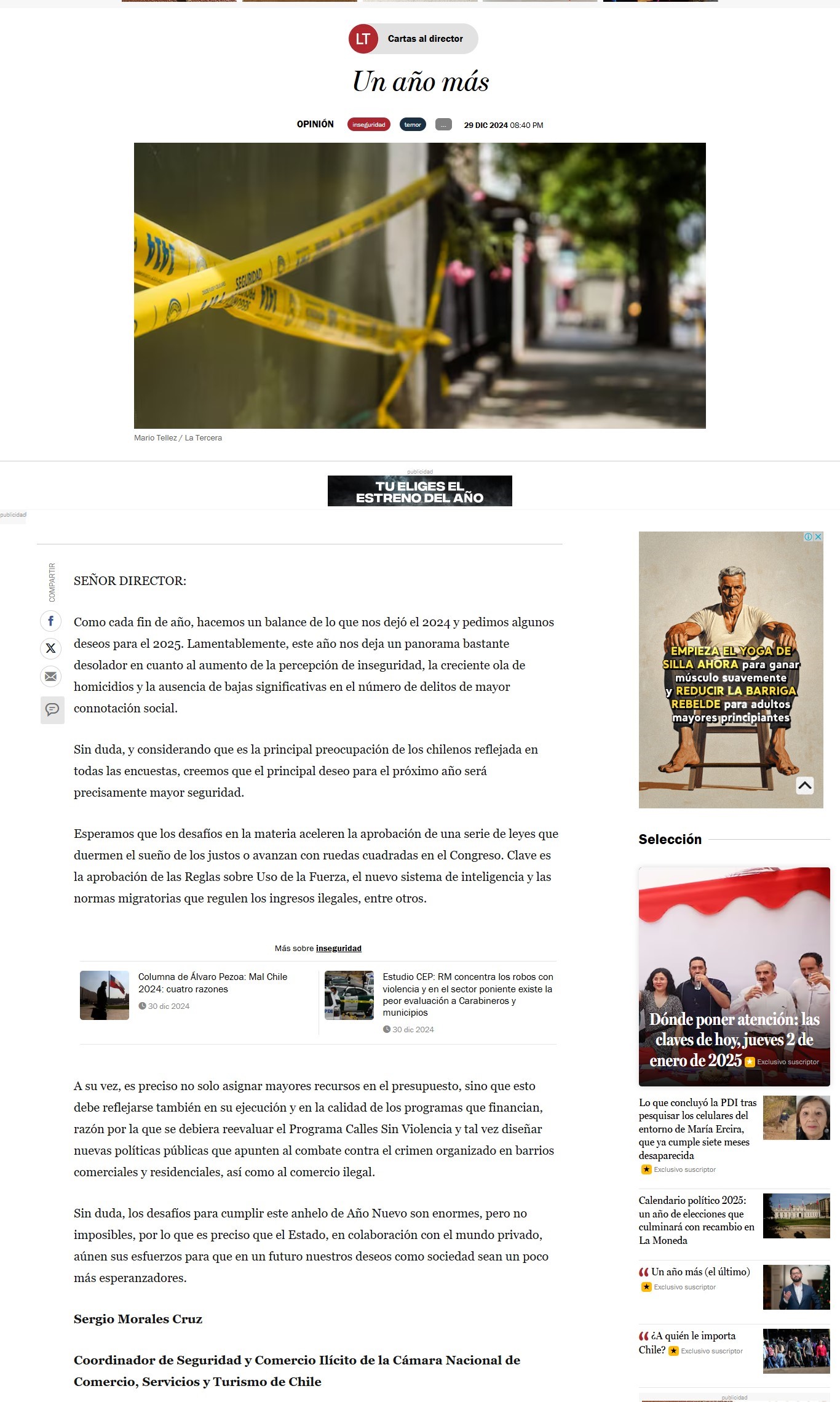 Un año más 29-12-2024 La Tercera Online SEÑOR DIRECTOR: Como cada fin de año, hacemos un balance de lo que nos dejó el 2024 y pedimos algunos deseos para el 2025. Lamentablemente, este año nos deja un panorama bastante desolador en c... |