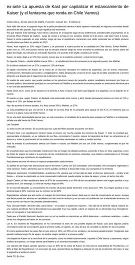 Una bajada de Kaiser en la recta final de la campaña, como se señaló anteriormente, inquieta a Chile Vamos y representa, según análisis de expertos, un riesgo latente para Matthei y un escenario favorable a Kast.