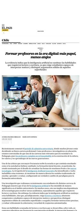 Formar profesores en la era digital: más papel, menos atajos 14-01-2026 El Pais.com La evidencia indica que la inteligencia artificial no sustituye las habilidades que requieren lectura y escritura, ya que exige estudiantes capaces de interpretar matices y distinguir argumentos sól... |