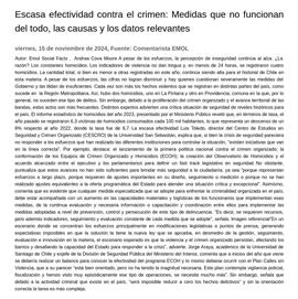 Este plan contempla vigilancia policial, fiscalización y hemos visto muy episódicamente ese tipo de operaciones, se necesita mucho más”. Sin embargo, señala que debido a la actividad criminal que existe en el país, “será imposible reducir a cero los hechos delictivos” y sin la orientación correcta la tarea es más compleja.