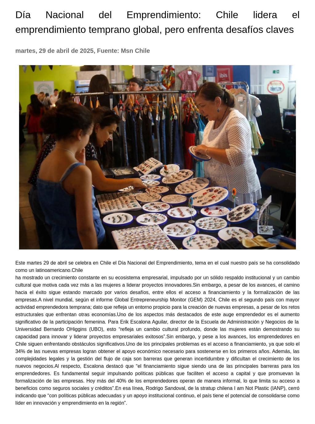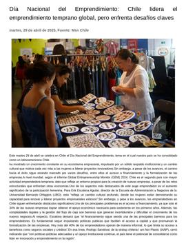 Día Nacional del Emprendimiento: Chile lidera el emprendimiento temprano global, pero enfrenta desafíos claves 29-04-2025 Msn Chile Este martes 29 de abril se celebra en Chile el Día Nacional del Emprendimiento, tema en el cual nuestro país se ha consolidado como un latinoamericano. Chile ha mostrado un crecimiento constante... |