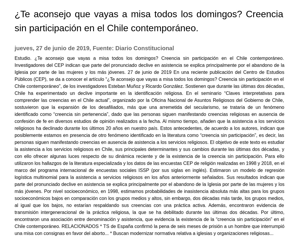 ¿Te aconsejo que vayas a misa todos los domingos? Creencia sin participación en el Chile contemporáneo.
