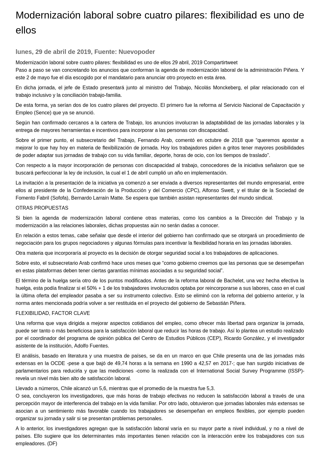 Modernización laboral sobre cuatro pilares: flexibilidad es uno de ellos 29/04/2019 Nuevopoder Modernización laboral sobre cuatro pilares: flexibilidad es uno de ellos 29 abril, 2019 ... |