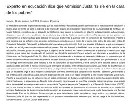 Experto en educación dice que Admisión Justa "se ríe en la cara de los pobres" 14-01-2019 Pousta El Presidente defendió el proyecto diciendo que "da más libertad y flexibilidad para los que están en la industria de la educación" y buena parte de Chile se tomó la cabeza a dos manos. El experto e... |