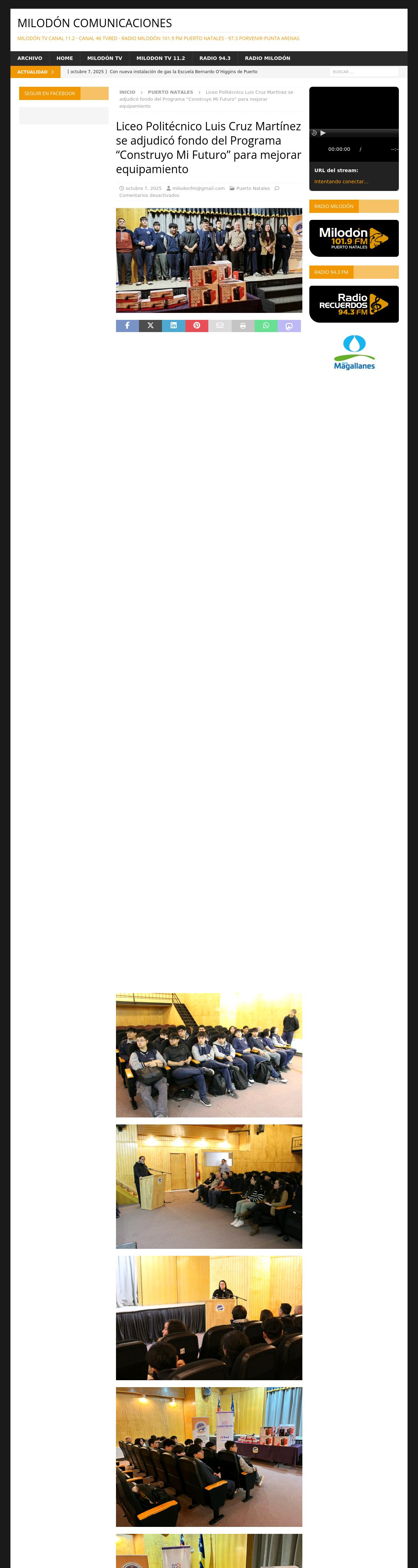 Liceo Politécnico Luis Cruz Martínez se adjudicó fondo del Programa “Construyo Mi Futuro” para mejorar equipamiento