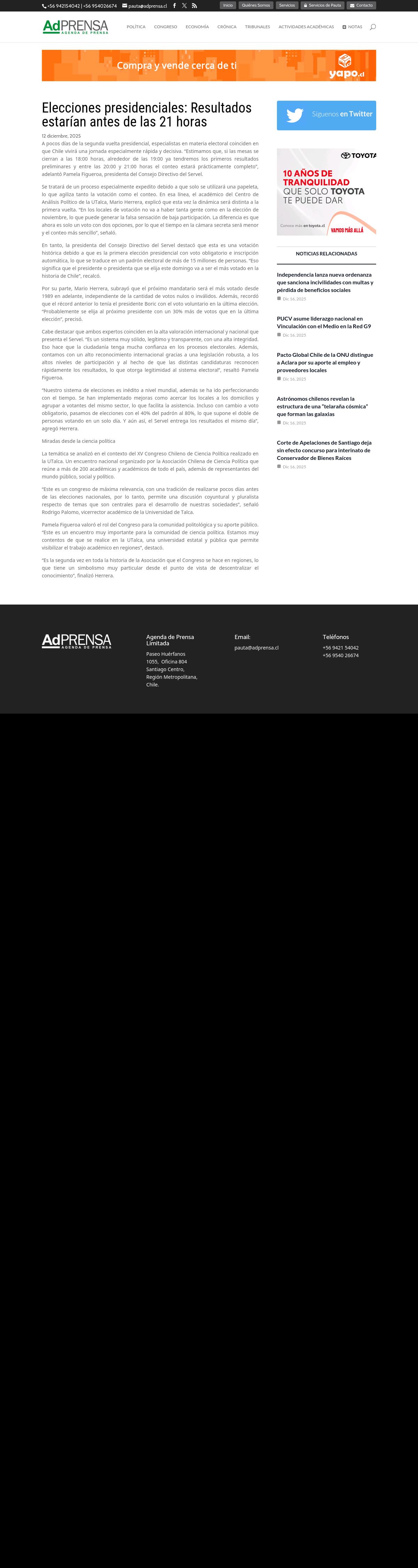 12 diciembre, 2025 A pocos días de la segunda vuelta presidencial, especialistas en materia electoral coinciden en que Chile vivirá una jornada especialmente rápida y decisiva.
