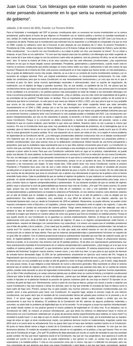 Juan Luis Ossa: “Los liderazgos que están sonando no pueden estar pensando únicamente en lo que sería su eventual período de gobierno”.