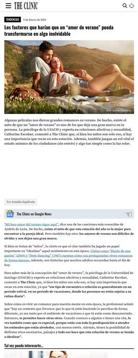 Para saber más de la concepción del “amor de verano”, la psicóloga de la Universidad de Santiago (USACH) y experta en relaciones afectivas y sexualidad, Catherine Escobar, comentó a The Clinic que, si bien los mitos son solo eso, sí hay una importancia que recae en esta estación, ya que “ese tipo de encuentro o relación es generalmente en un periodo estival, en un periodo de vacaciones, donde las personas no están sujetas a su rutina diaria”.