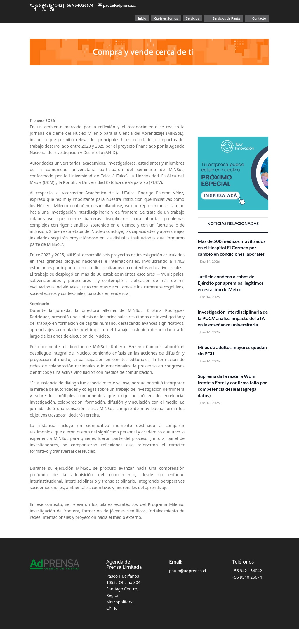 11 enero, 2026 En un ambiente marcado por la reflexión y el reconocimiento se realizó la jornada de cierre del Núcleo Milenio para la Ciencia del Aprendizaje (MiNSoL), instancia que permitió relevar los principales hitos, resultados e impactos del trabajo desarrollado entre 2023 y 2025 por el proyecto financiado por la Agencia Nacional de Investigación y Desarrollo (ANID). Autoridades universitarias, académicos, investigadores, estudiantes y miembros de la comunidad universitaria participaron del seminario de MiNSoL, conformado por la