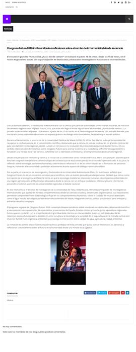 La invitación es abierta a toda la comunidad maulina a participar de esta jornada, que busca acercar la ciencia a las personas y reflexionar colectivamente sobre el futuro de la humanidad desde una mirada local y global.