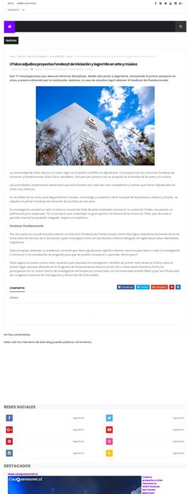 Universidad de Talca obtuvo un nuevo logro en el ámbito científico al adjudicarse 19 proyectos en los concursos Fondecyt de Iniciación y Postdoctorado 2026. Estos resultados, incluyen por primera vez un proyecto en el ámbito de las artes y la música. Las autoridades universitarias destacaron que estos fondos son cada vez más competitivos y realzan que fueron adjudicados en áreas muy diversas. En el ámbito de las artes, José Miguel Ramos Fuentes, musicólogo y académico de la Facultad de Arquitectura, Música y Diseño, se adjudicó el primer Fondecyt de Iniciación de la