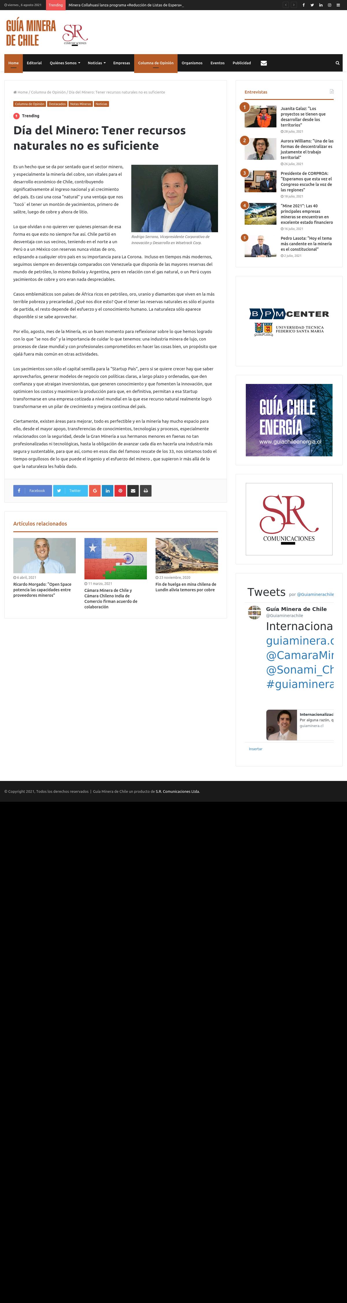 Por ello, agosto, mes de la Minería, es un buen momento para reflexionar sobre lo que hemos logrado con lo que “se nos dio” y la importancia de cuidar lo que tenemos: una industria minera de lujo, con procesos de clase mundial y con profesionales comprometidos en hacer las cosas bien, un propósito que ojalá fuera más común en otras actividades.