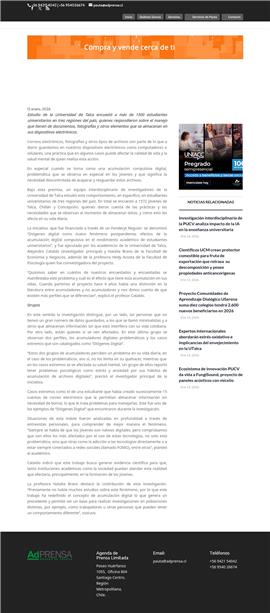 “Previamente no había muchos estudios sobre este fenómeno, por lo que este trabajo ha redefinido el concepto de acumulación digital lo que genera un precedente y permite ser un base para realizar investigaciones en poblaciones distintas, por ejemplo, como trabajadores u otras personas que pueden tener un comportamiento diferente”, sostuvo.