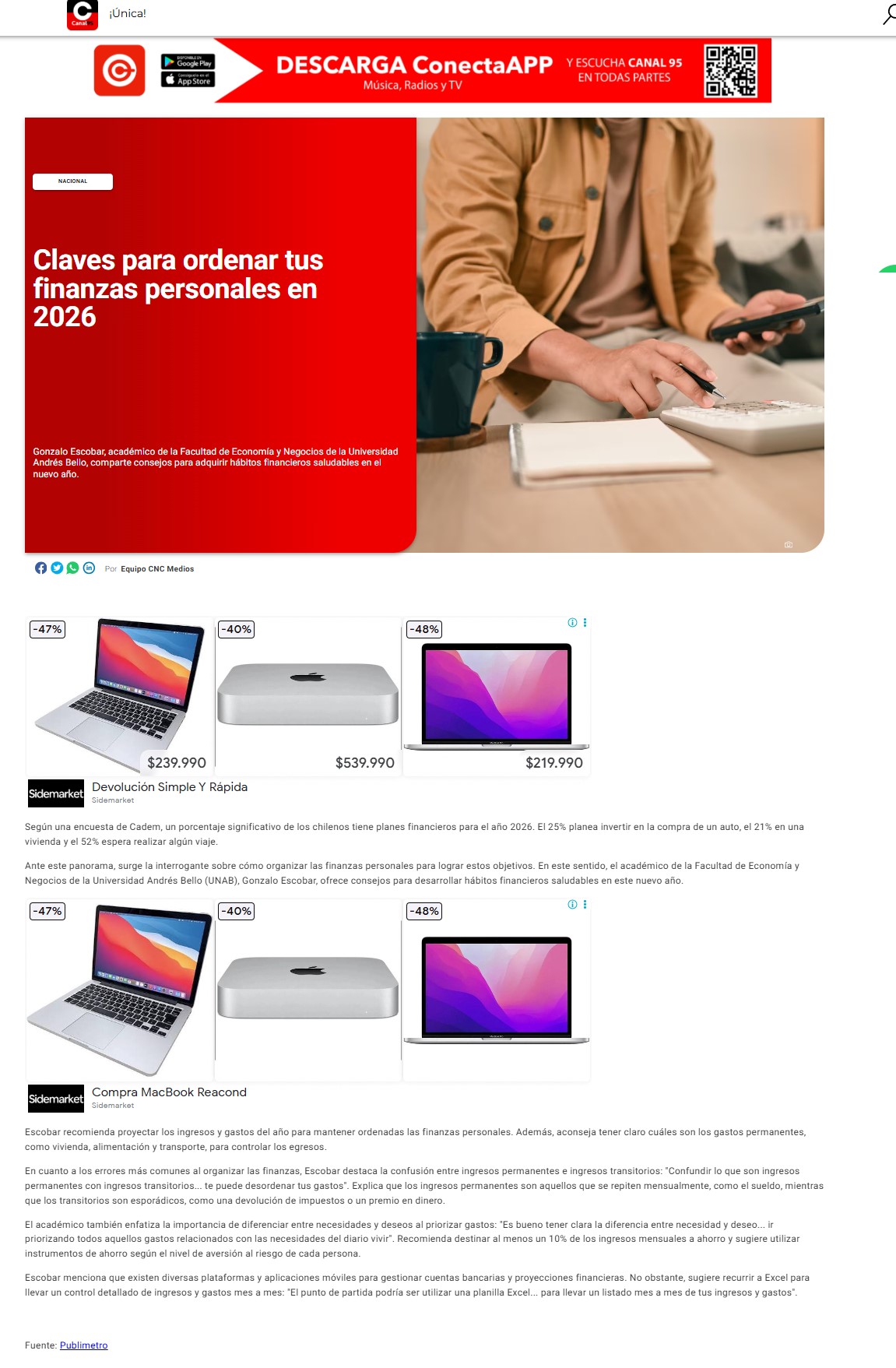 Universidad Andrés Bello, comparte consejos para adquirir hábitos financieros saludables en el nuevo año. Según una encuesta de Cadem, un porcentaje significativo de los chilenos tiene planes financieros para el año 2026. El 25% planea invertir en la compra de un auto, el 21% en una vivienda y el 52% espera realizar algún viaje. Ante este panorama, surge la interrogante sobre cómo organizar las finanzas personales para lograr estos objetivos. En este sentido, el académico de la Facultad de Economía y Negocios de la