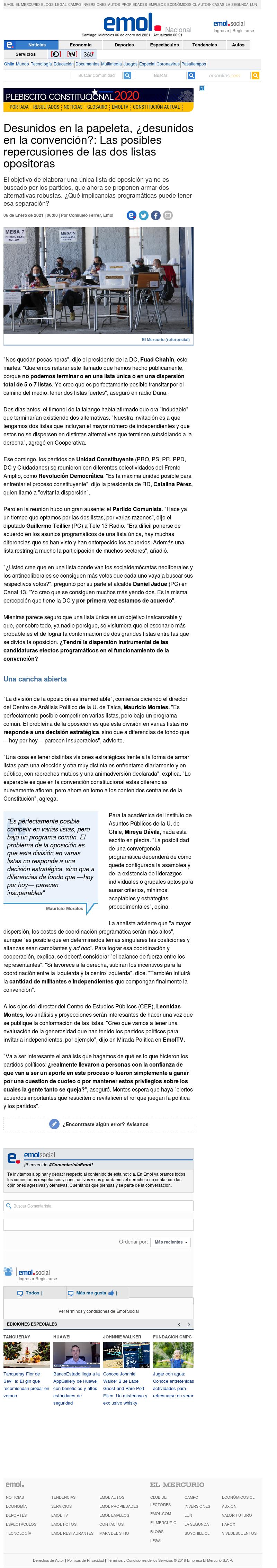 Desunidos en la papeleta, ¿desunidos en la convención?: Las posibles repercusiones de las dos listas opositoras 06-01-2021 EMOL Desunidos en la papeleta, ¿desunidos en la convención?: Las posibles repercusiones de las dos listas opositoras El objetivo de elaborar una única lista de oposición ya no es buscado por los partidos... |
