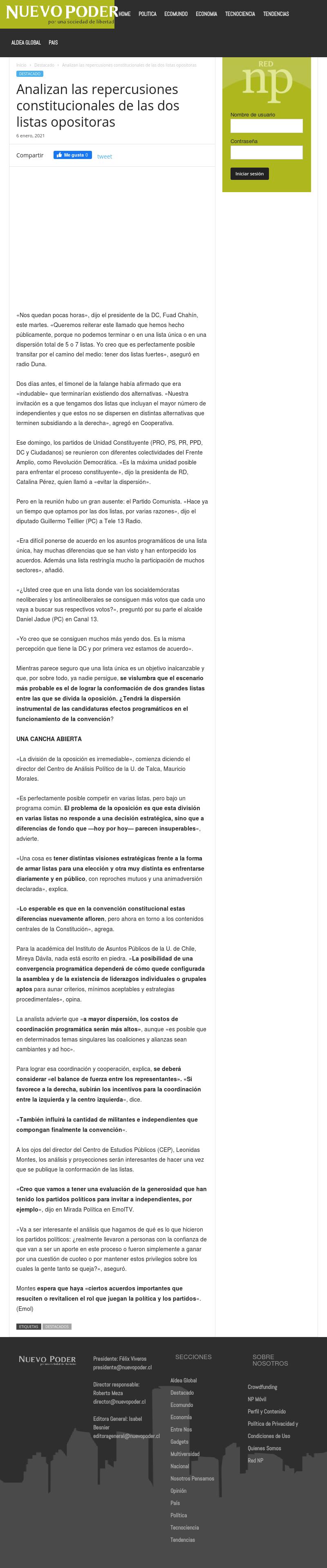 | Medio: | Nuevopoder | Categoría: | Informativo Noticioso | Favorabilidad: | |