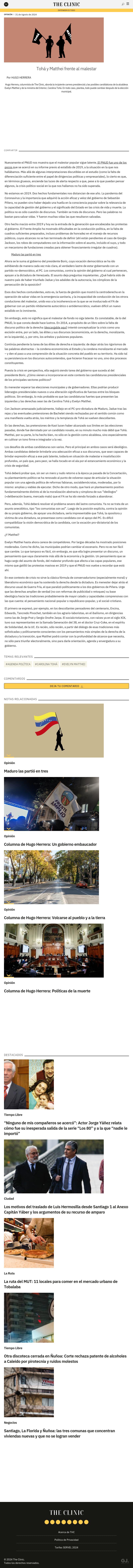 | Medio: | The Clinic | Categoría: | Informativo Noticioso | Favorabilidad: | |