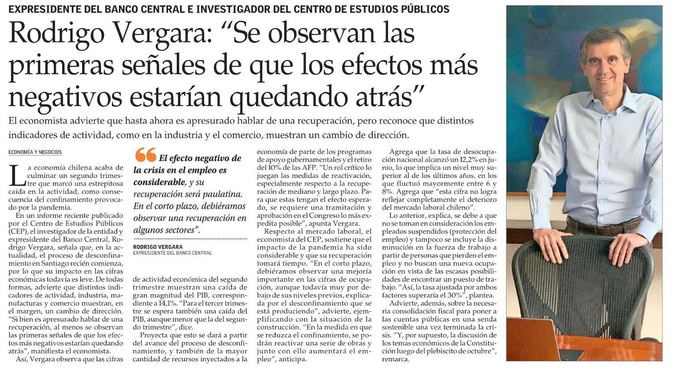 Rodrigo Vergara: “Se observan las primeras señales de que los efectos más negativos estarían quedando atrás”