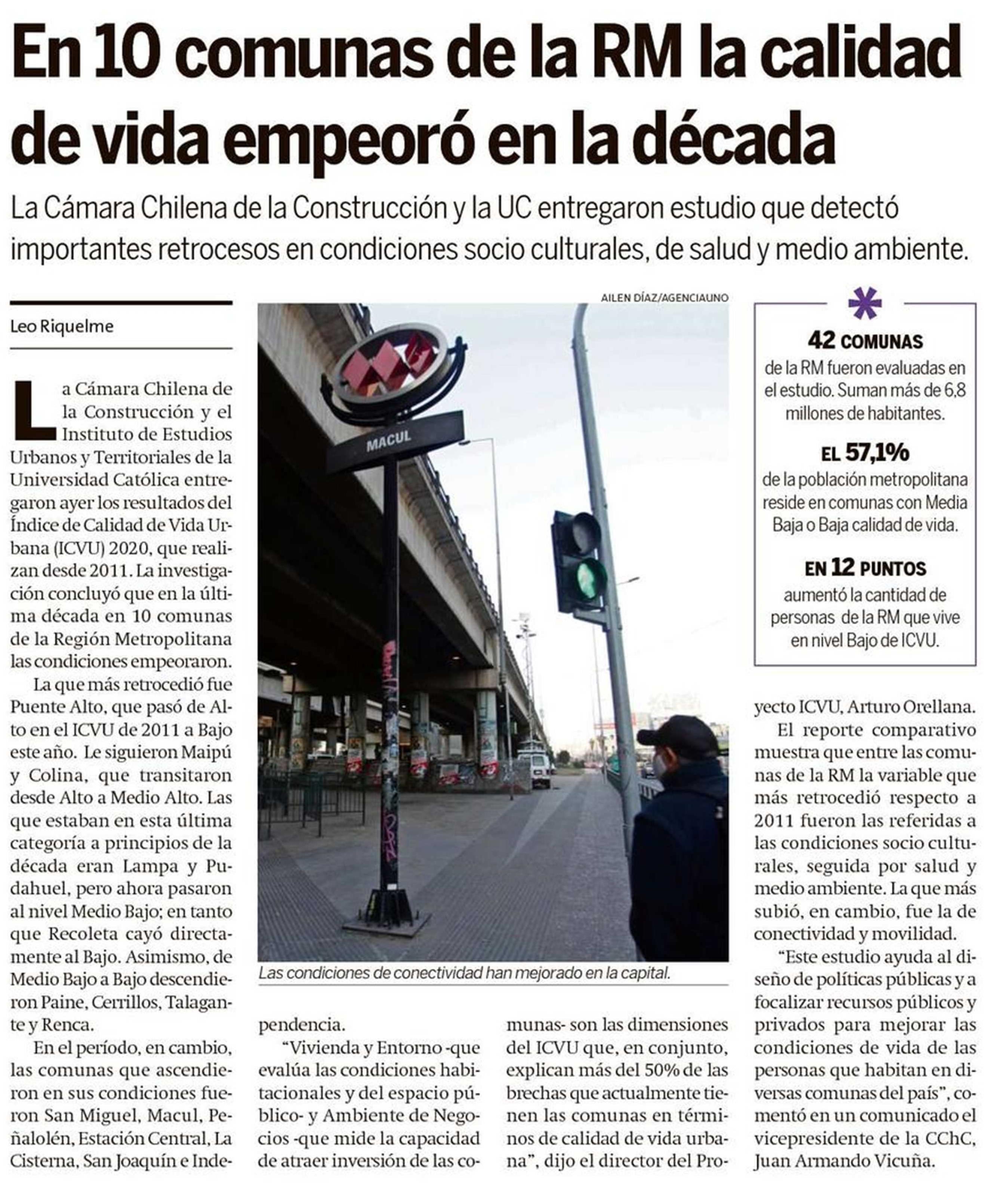En 10 comunas de la RM la calidad de vida empeoró en la década