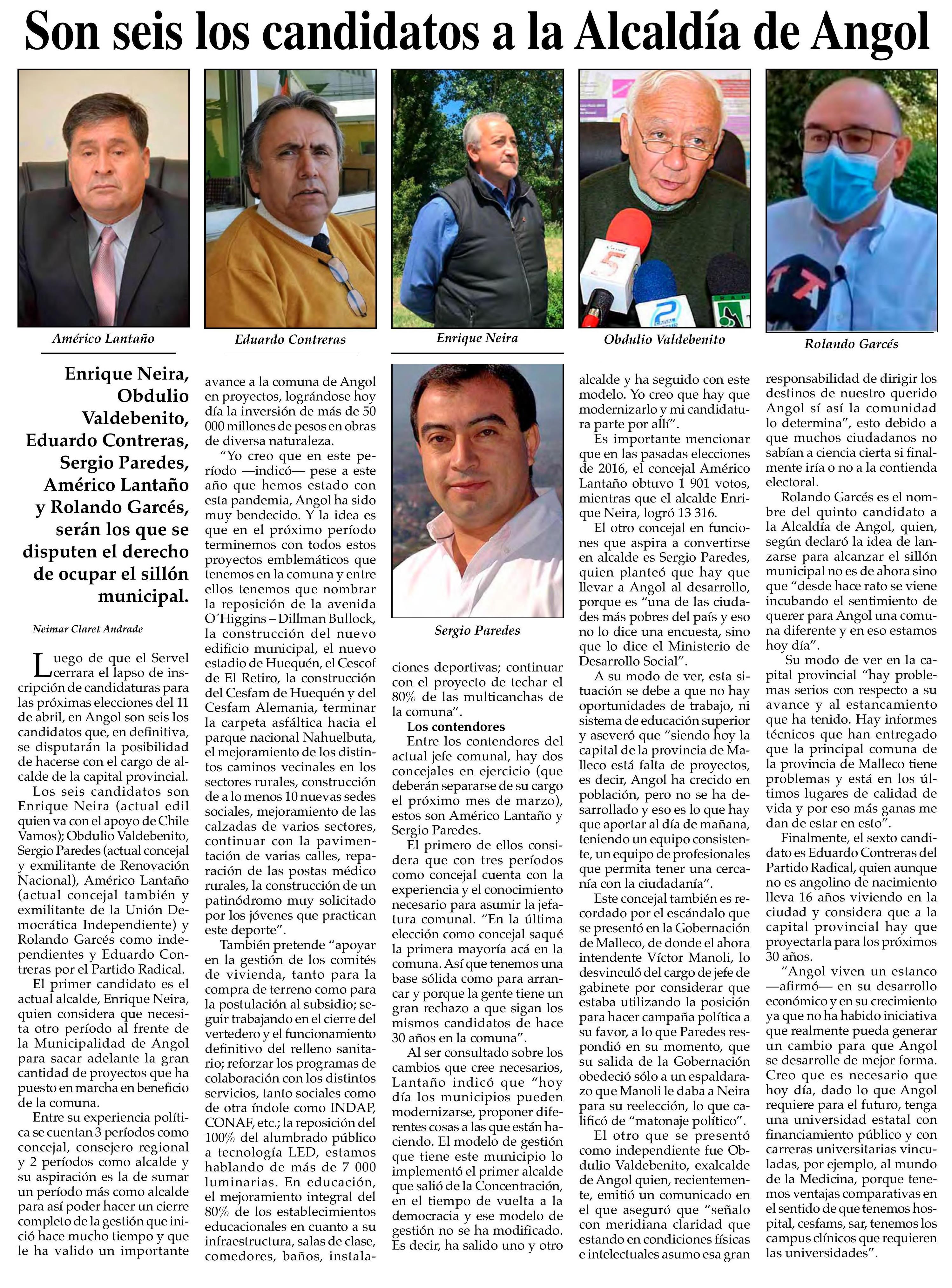 Son seis los candidatos a la Alcaldía de Angol