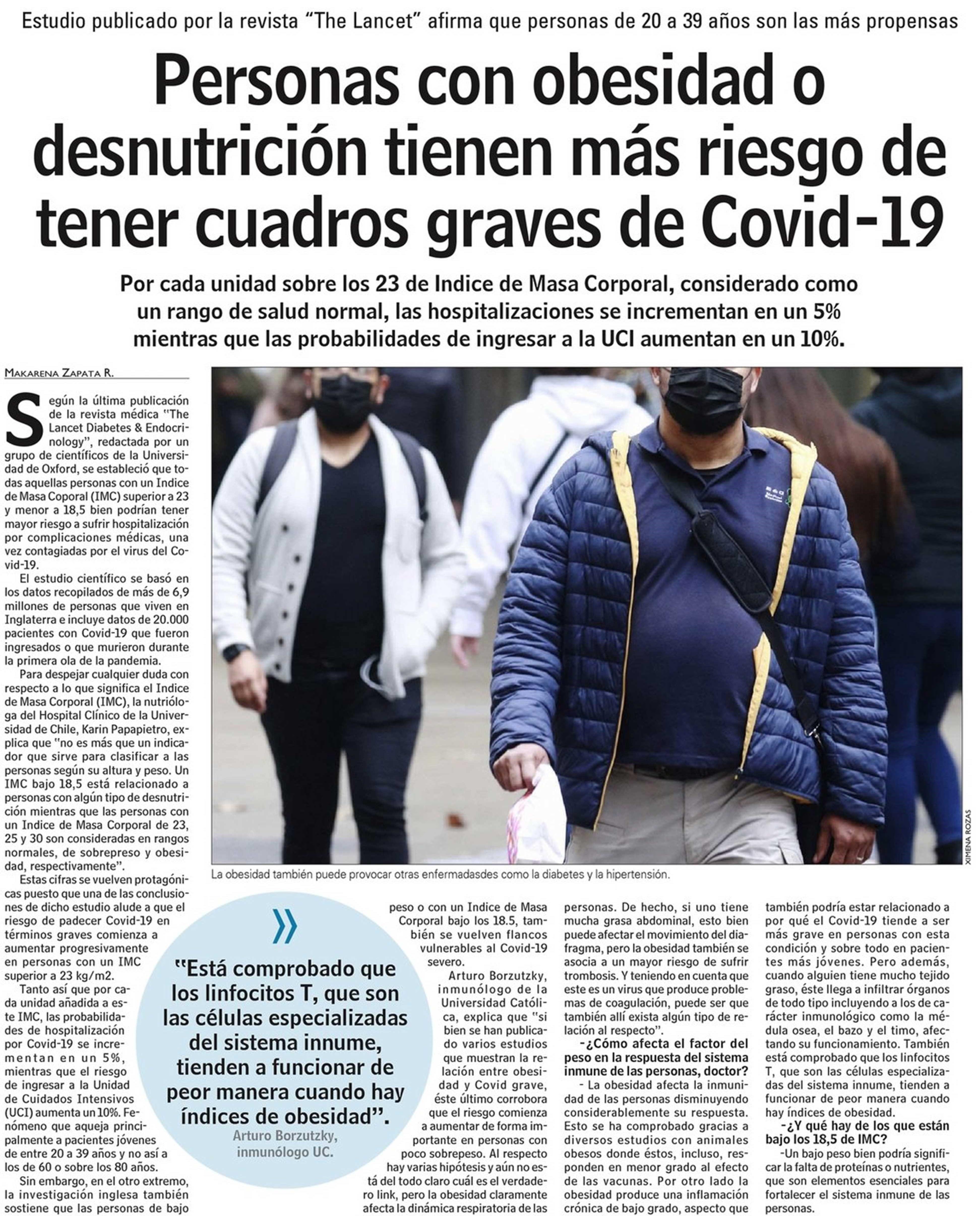 Personas con obesidad o desnutrición tienen más riesgo de tener cuadros graves de Covid-19