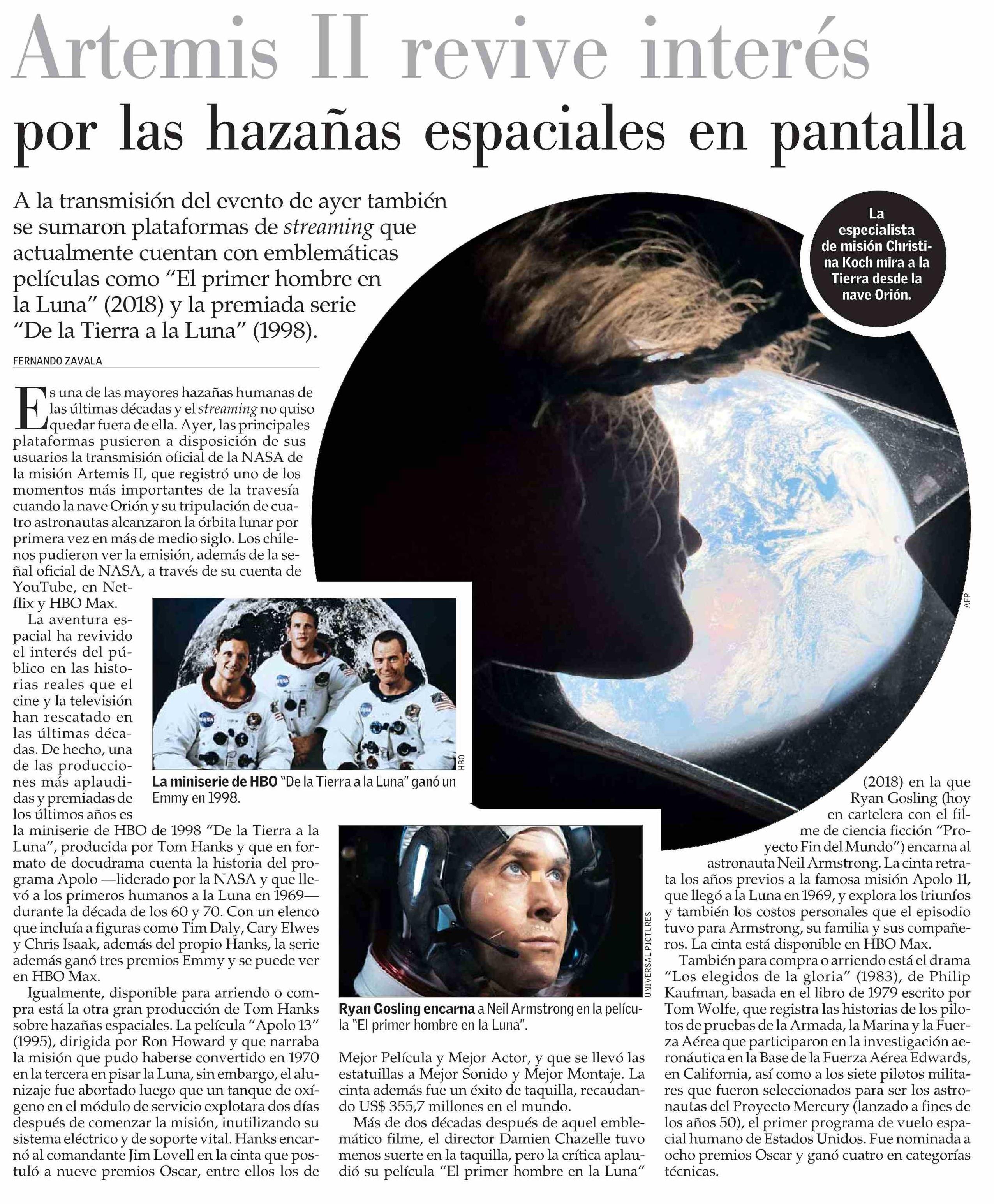 Artemis II revive interés por las hazañas espaciales en pantalla