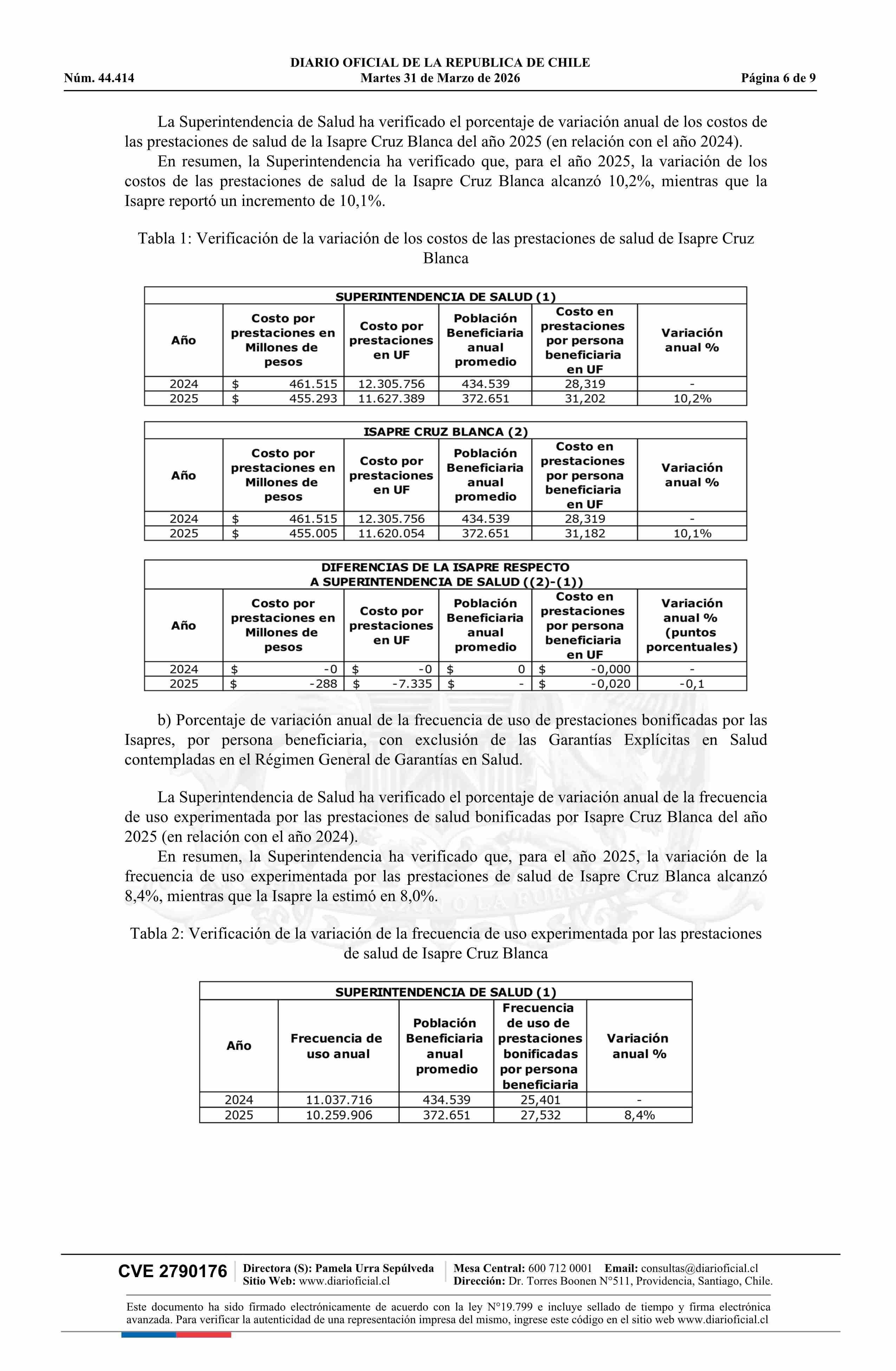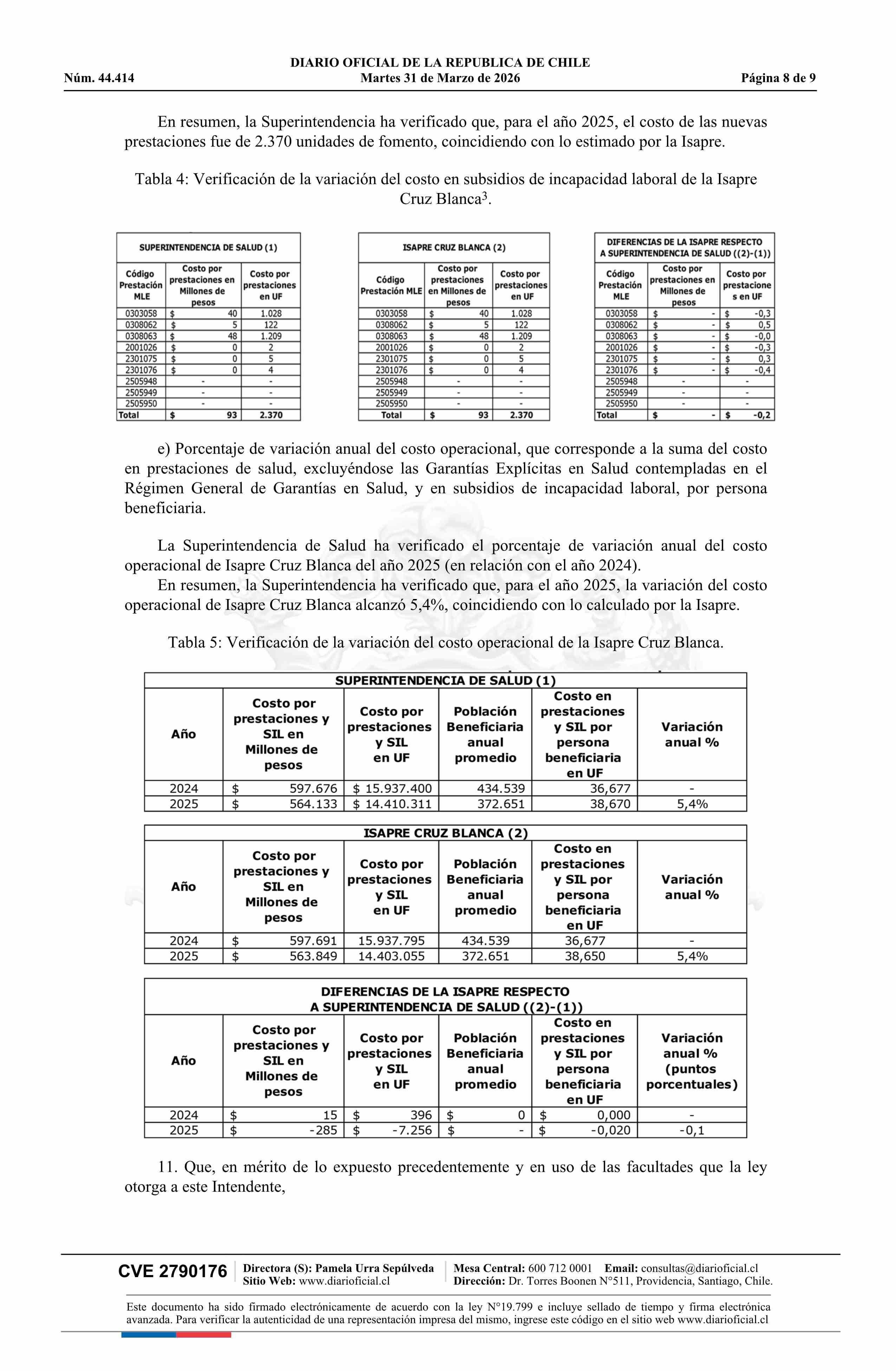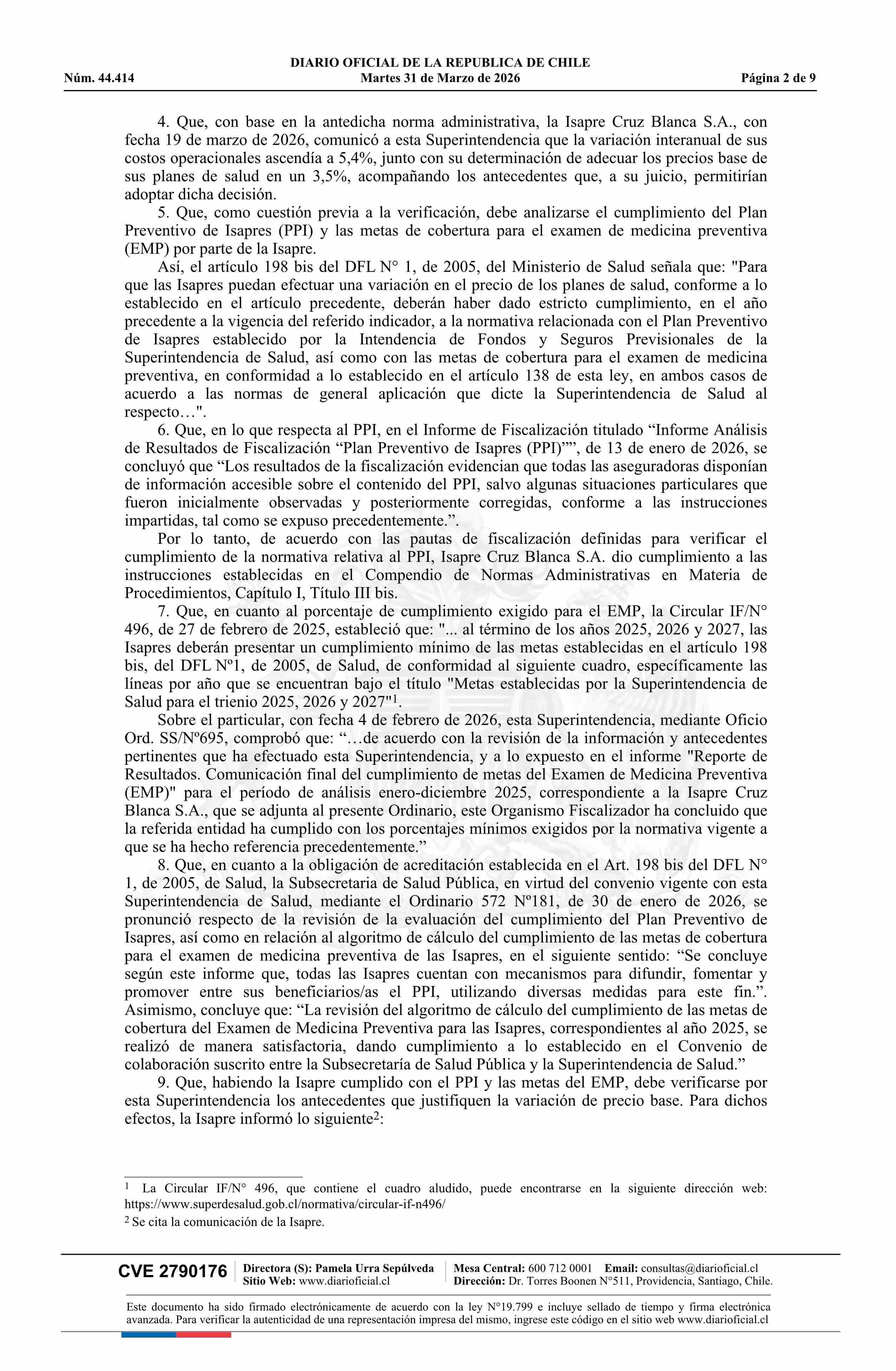 | Título: | Resolución exenta número IF 3.123, de 2026.- Autoriza el ajuste de los precios base de los planes de salud de la Isapre Cruz Blanca S.A. |